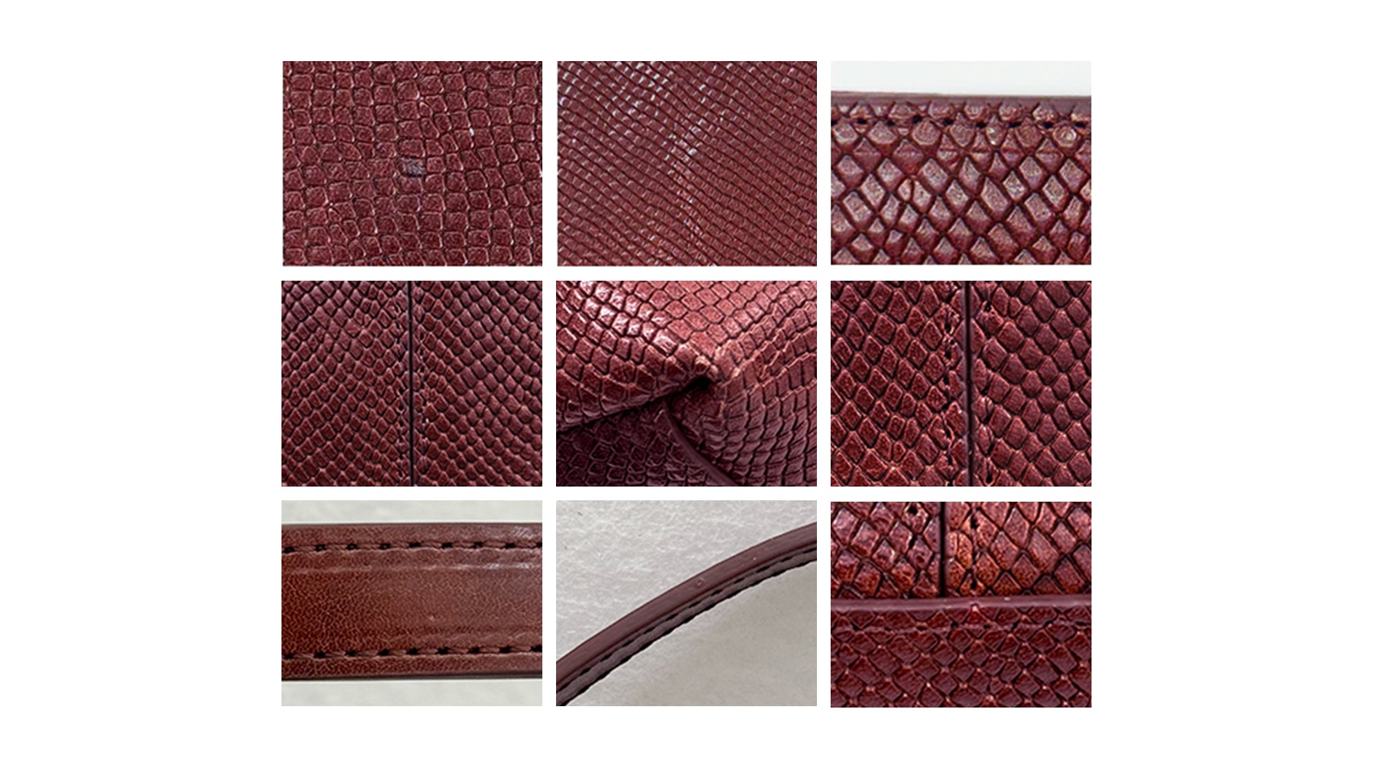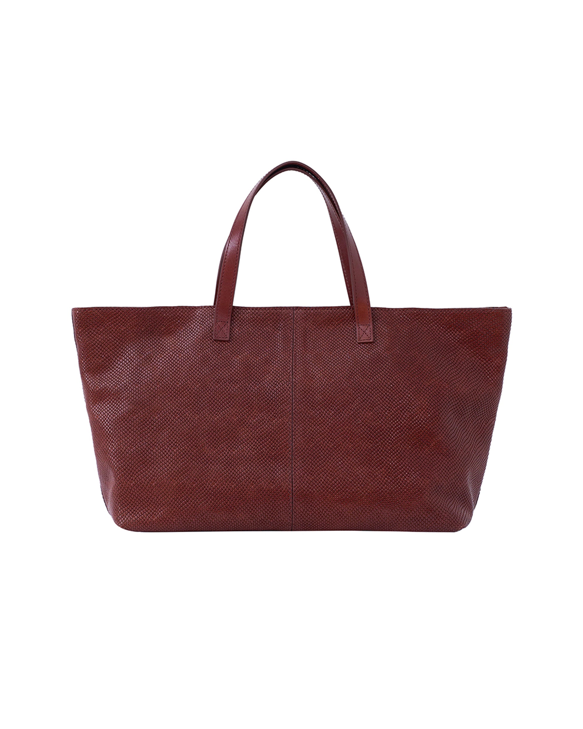 This is minitmute 25 tote bag. Crafted from Italian vegetable leather pressed with a lizard pattern, it features intricate details. Infused oil wax to add a subtle sheen and an elegant mood, while it naturally ages to provide a deeper and more stylish look over time. Strap is crafted from eco-friendly vegetable leather certified by the Italian Vera Pelle. Enhanced its minimalist mood with the addition of a chamude lining and YKK zipper.
