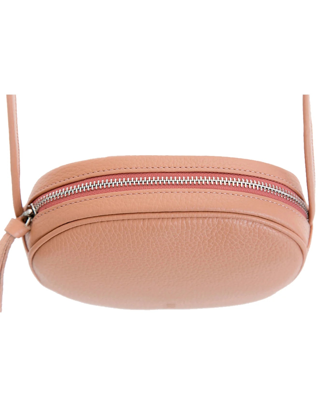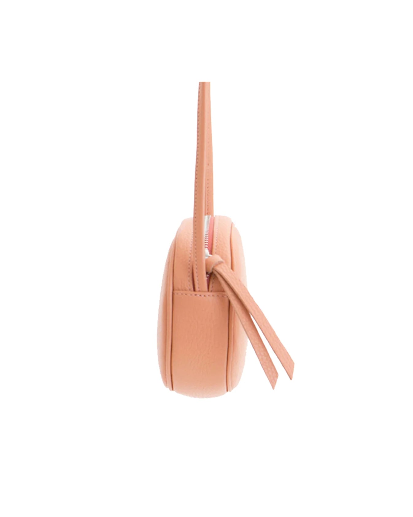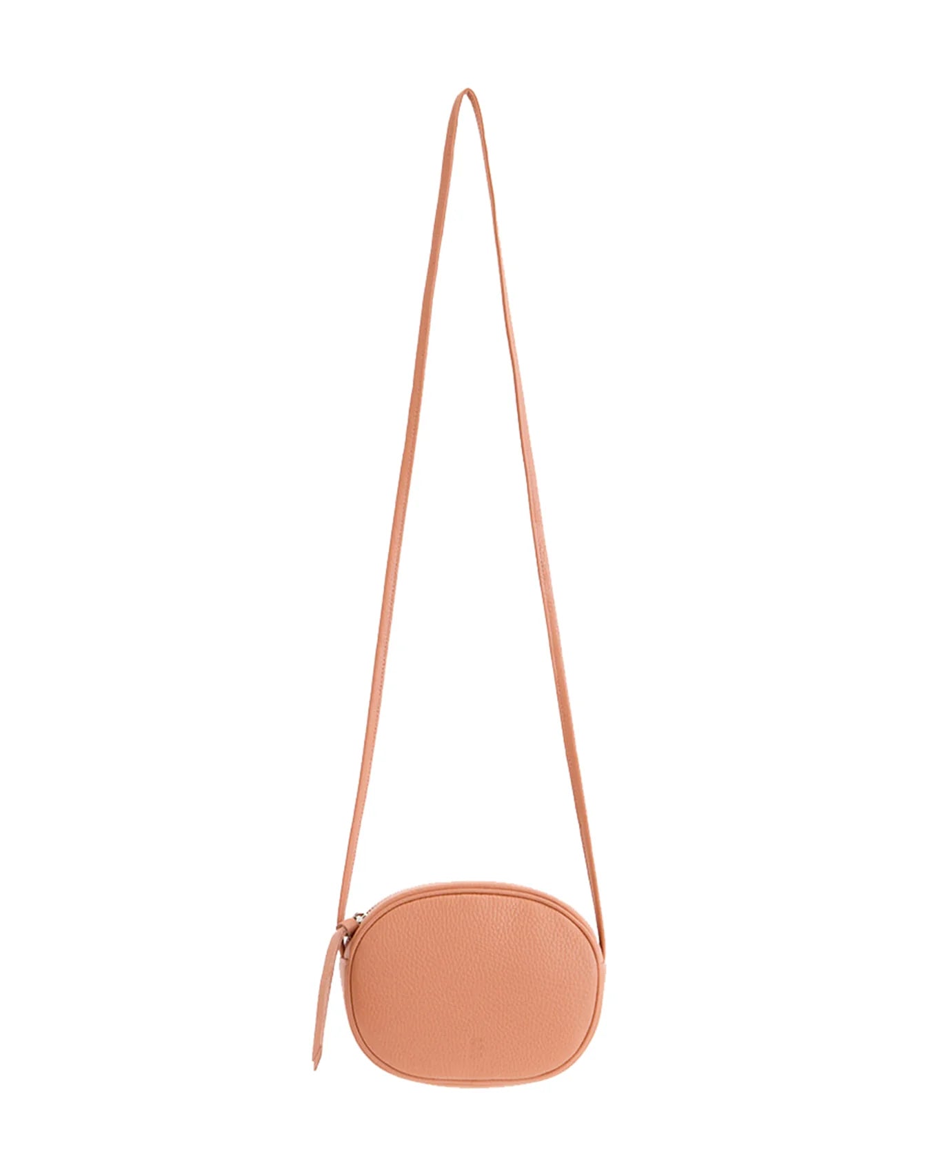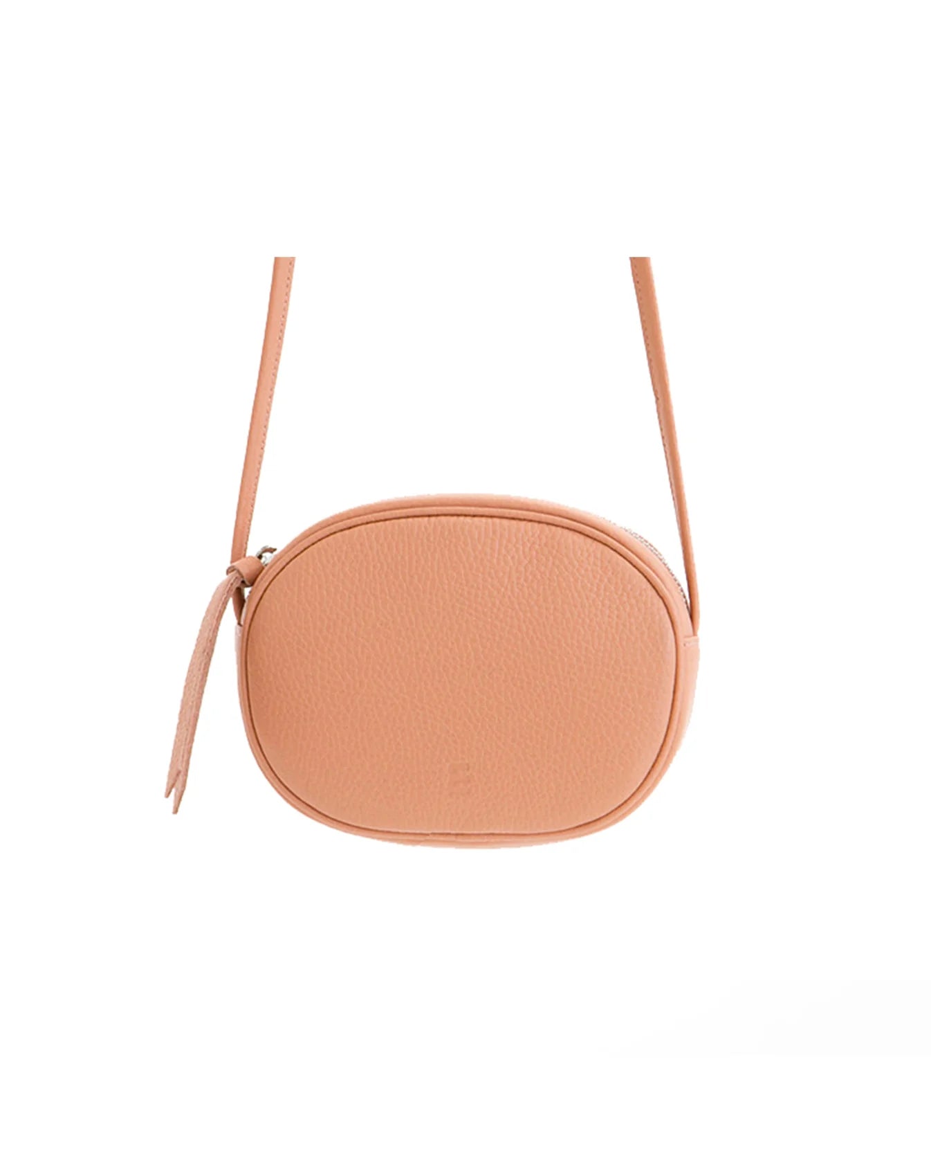 This is the minitmute Ari bag. Made with Italian embossed shrunken leather in a unique, irregular, and natural embossed pattern. The bag features a coating that provides resistance to scratches and moisture, making it a comfortable choice for daily use during the rainy season. With its optimal mini size, it can accommodate essential items such as a passport, compact phone, and more.