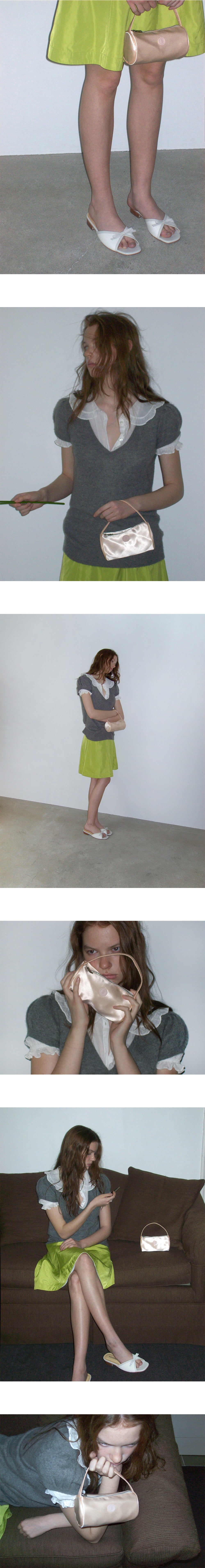 This is minitmute clo circle. Crafted from heavy satin, with its spring-inspired colors and firm texture, offers subtle sheen and a soft touch. While it's more resistant to stains and discoloration than standard satin, the material is vulnerable to oil, so please take care immediately after applying hand cream.