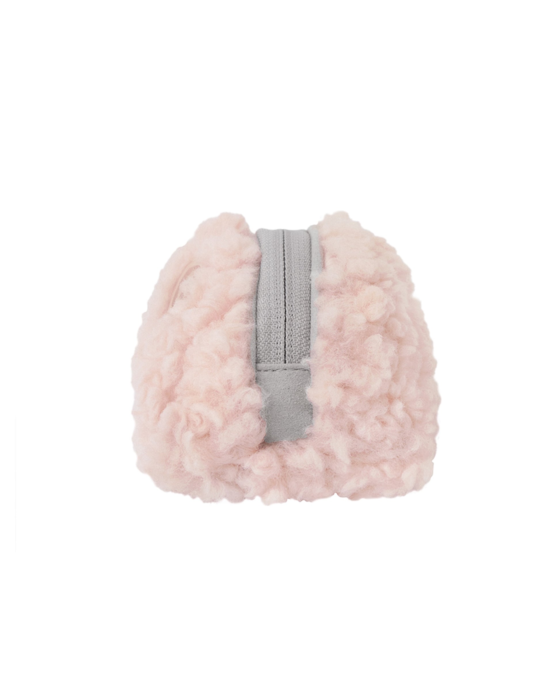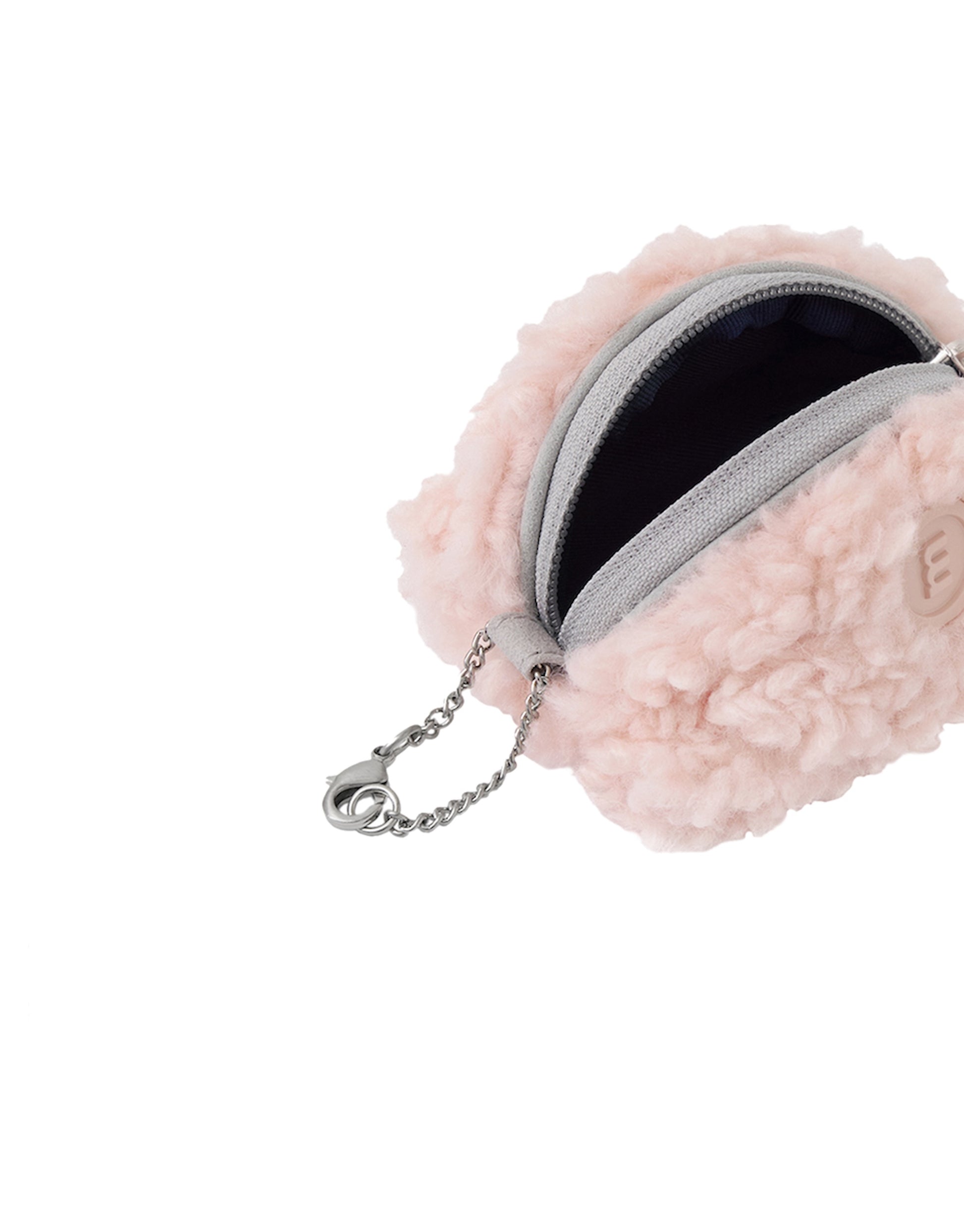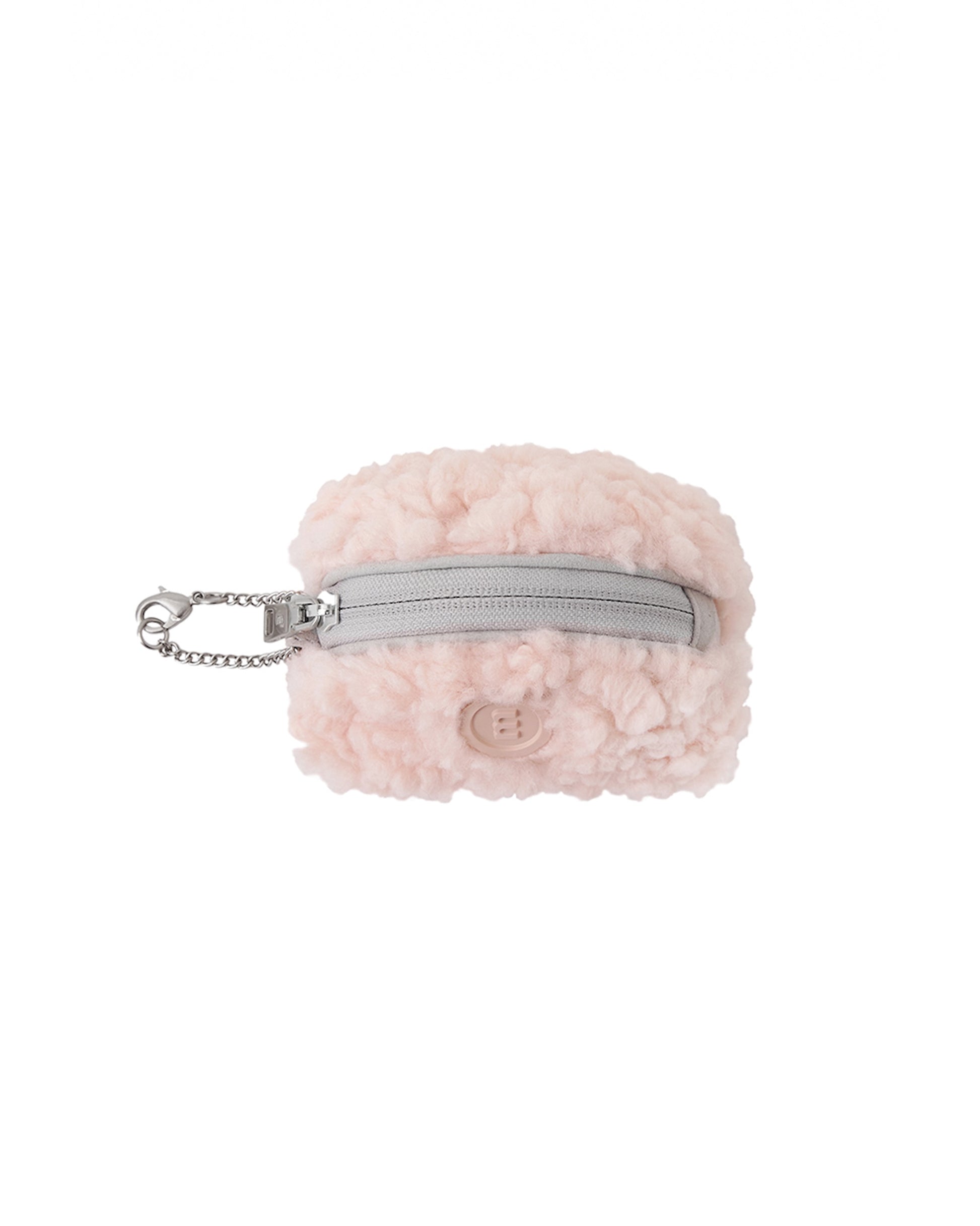 This is clo pouch keyring that is perfect for storing small items such as airpods, lipsticks and jewelry and attached in various ways. Crafted from by mix of poly shearing fabric and chamude that retains its shape while offering a rich volume and soft texture.