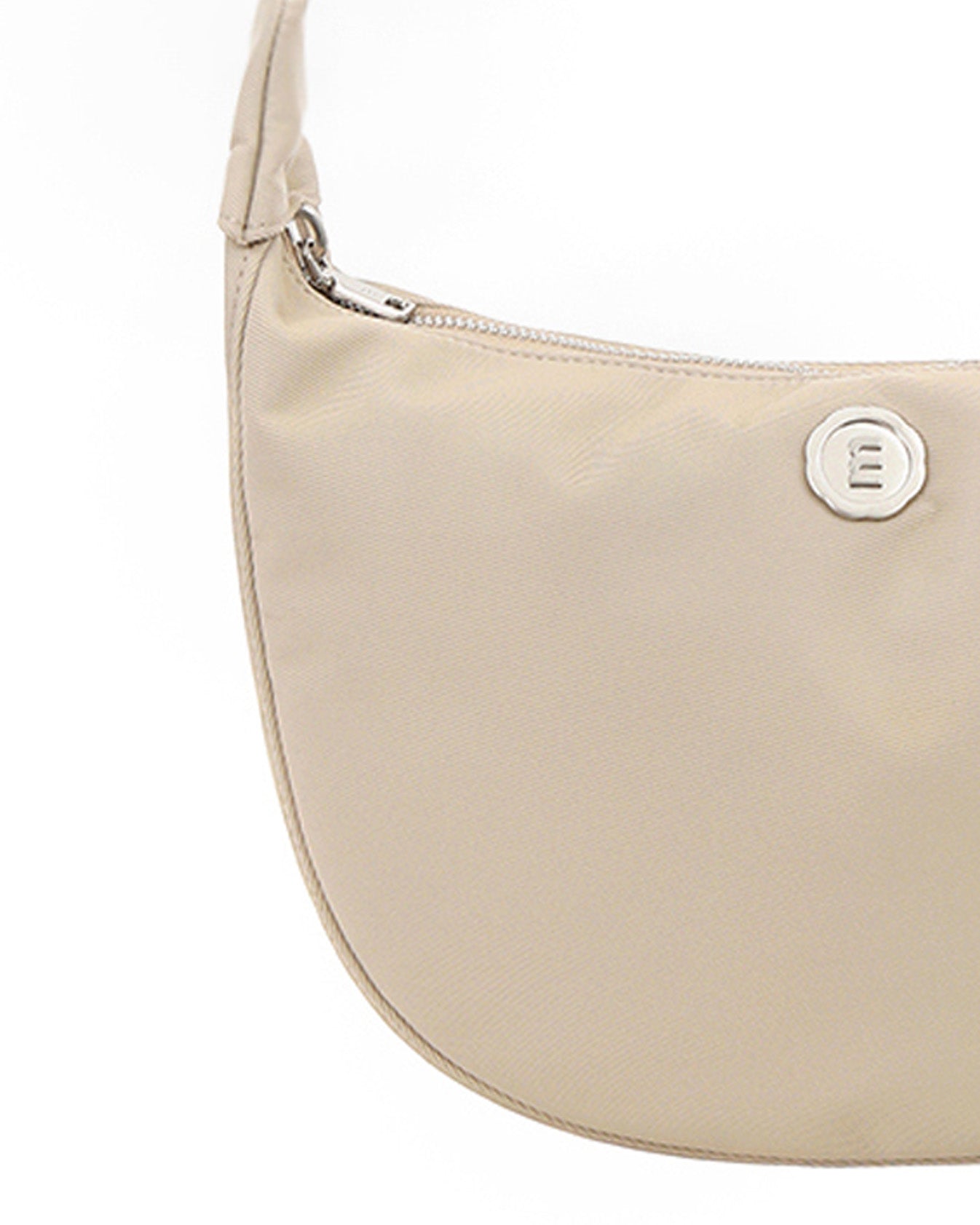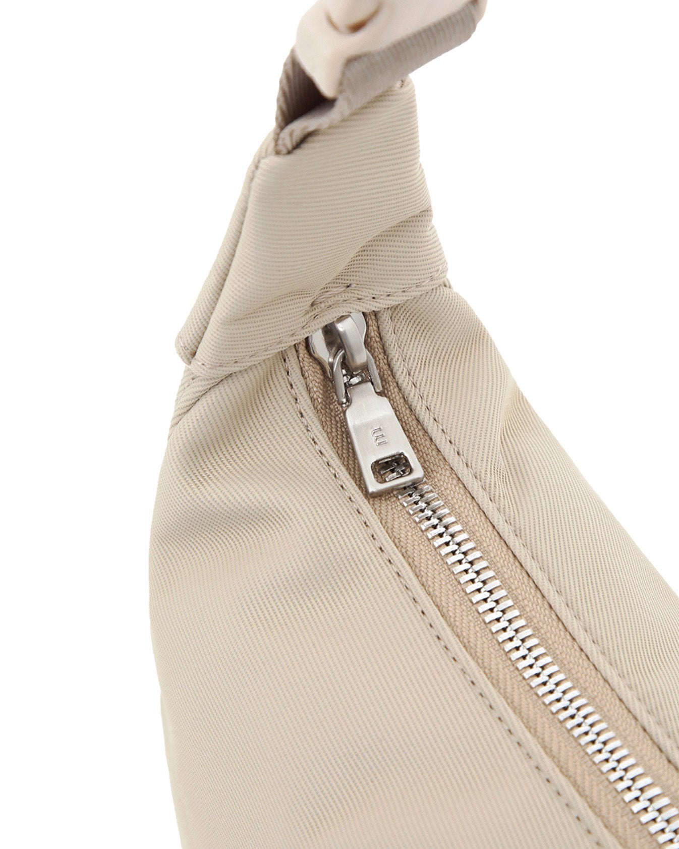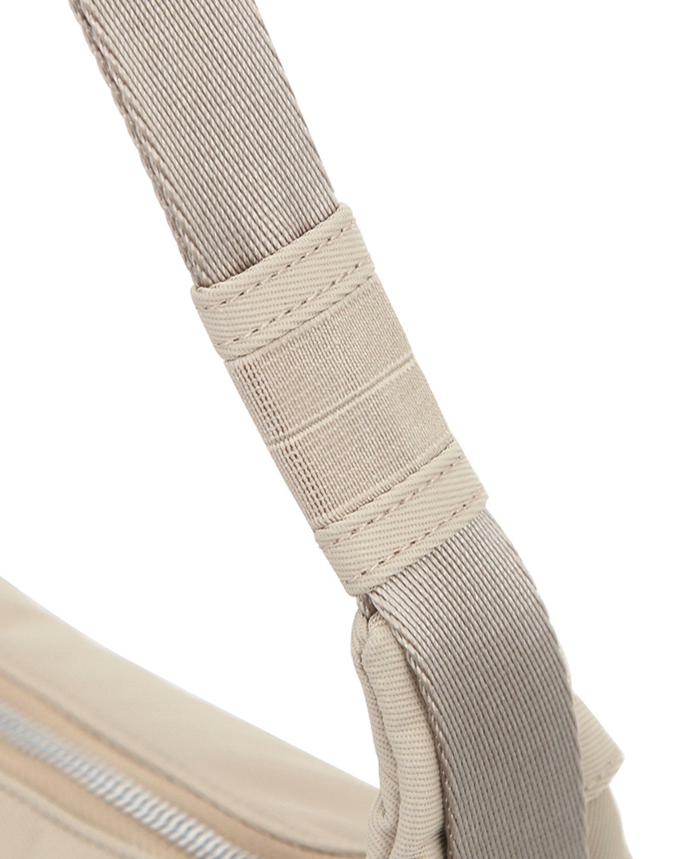 This is the minitmute Clo waist bag. Made with durable and lightweight nylon heavy twill, it features a double layer combined fabric and internal coating for a thick and luxurious touch. The bag is also water-resistant for everyday use. It can be freely transformed into various styles like a shoulder bag, crossbody, or tote, allowing you to match it with different outfits.