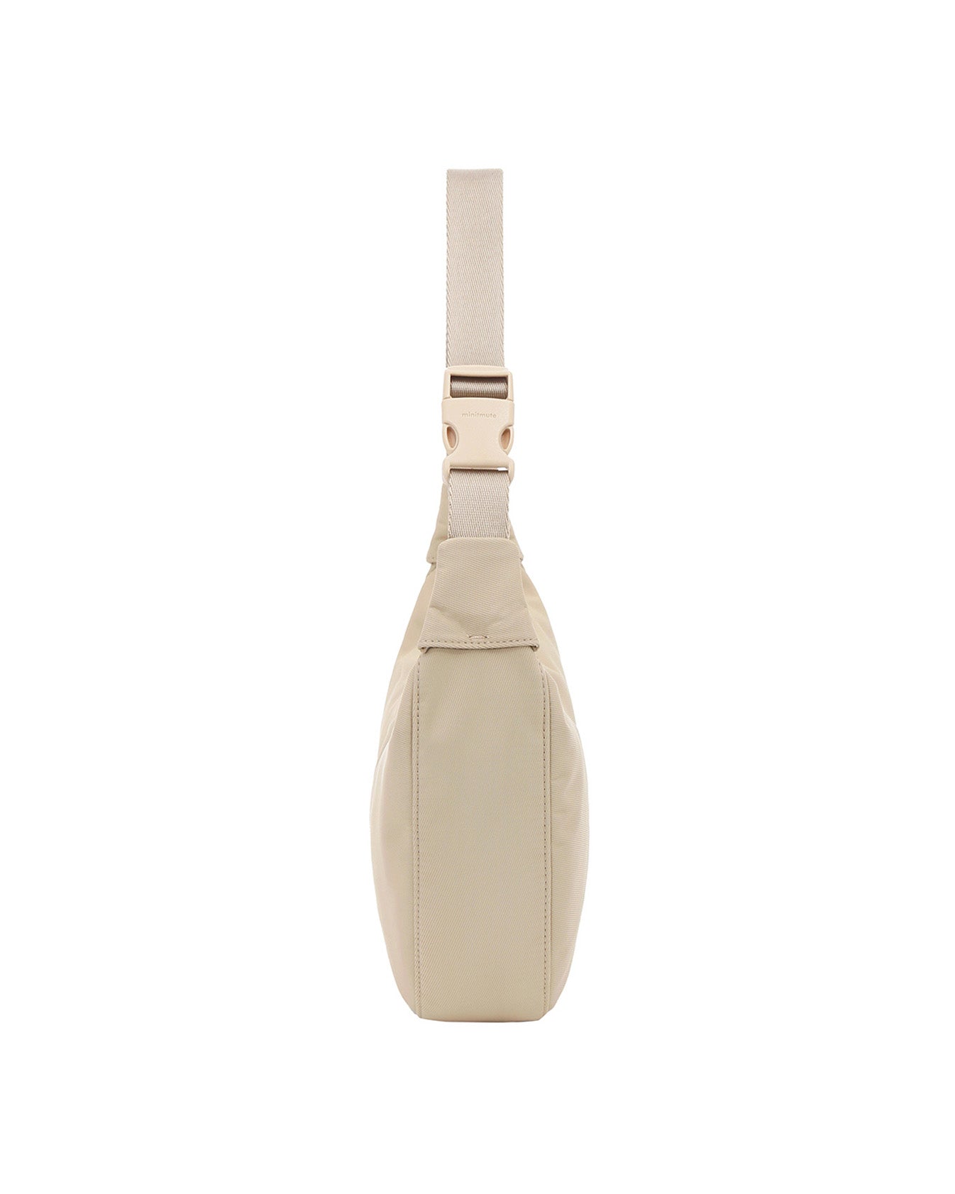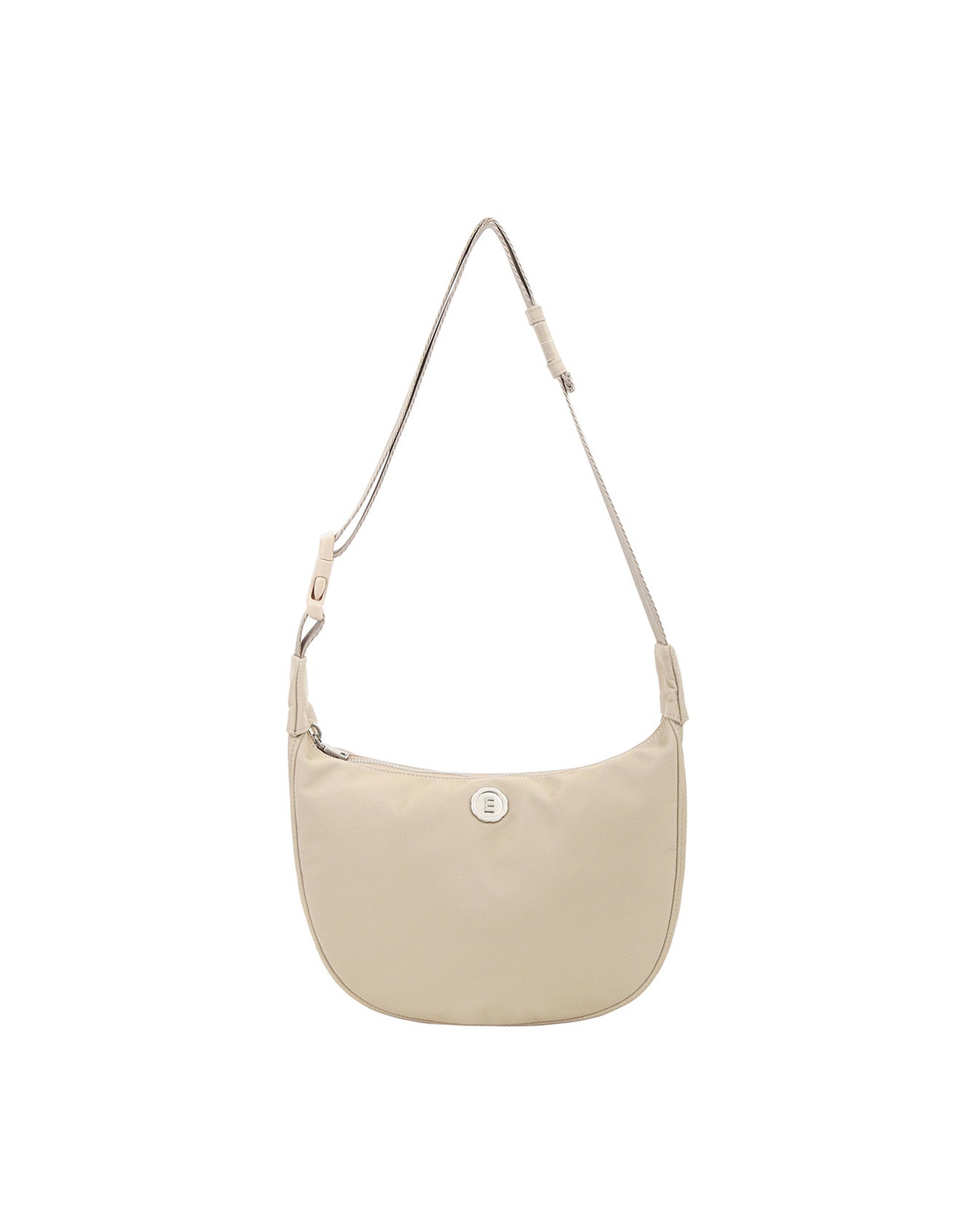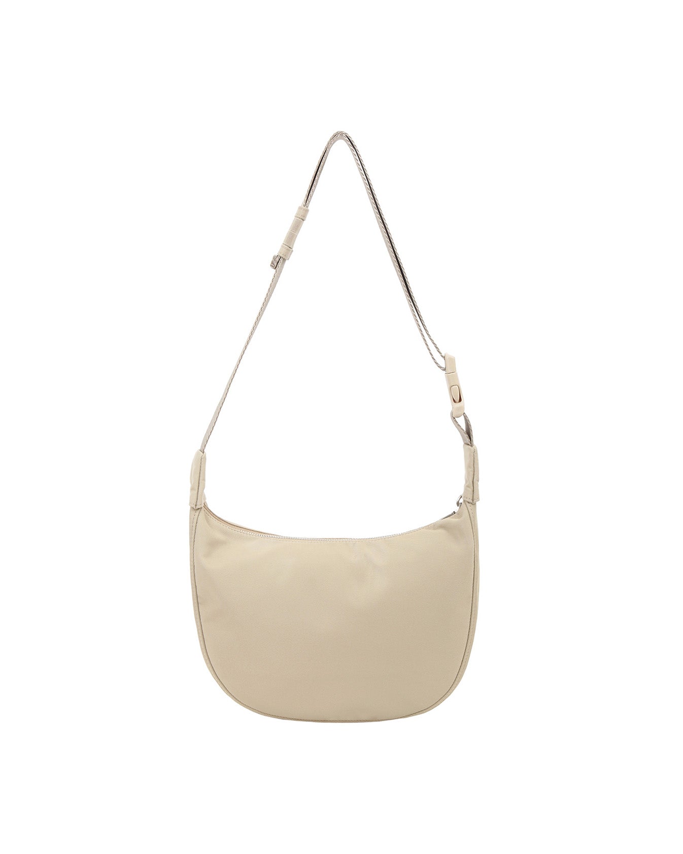 This is the minitmute Clo waist bag. Made with durable and lightweight nylon heavy twill, it features a double layer combined fabric and internal coating for a thick and luxurious touch. The bag is also water-resistant for everyday use. It can be freely transformed into various styles like a shoulder bag, crossbody, or tote, allowing you to match it with different outfits.