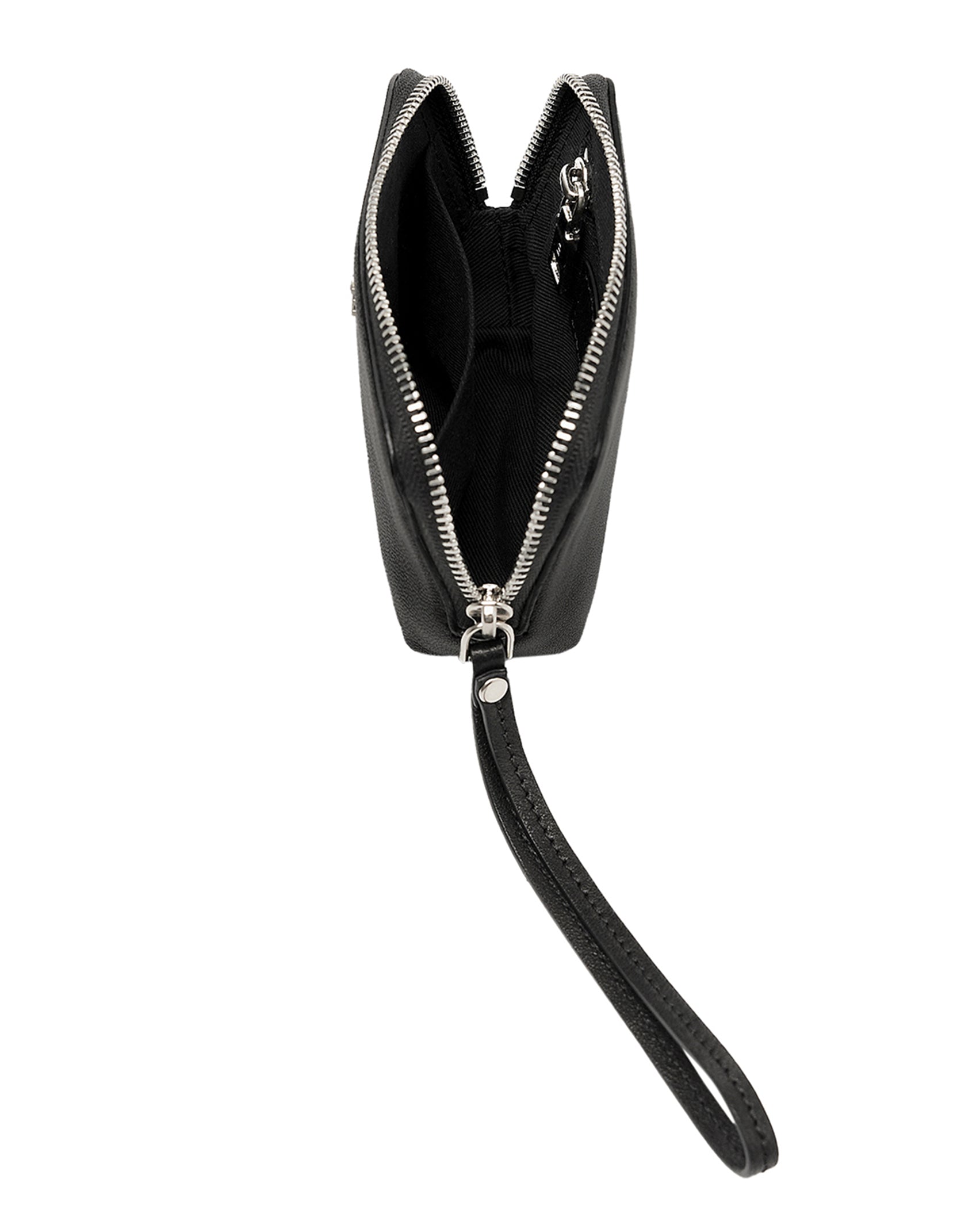 This is minitmute m pouch wallet. Crafted from soft touch Italian sheepskin, develops a natural sheen over time through aging. A zipper pocket for cards and coins is inside the wallet, as well as small items like lipstick, lip balm, and AirPods. Finished with the minitmute signature m logo and YKK zipper.