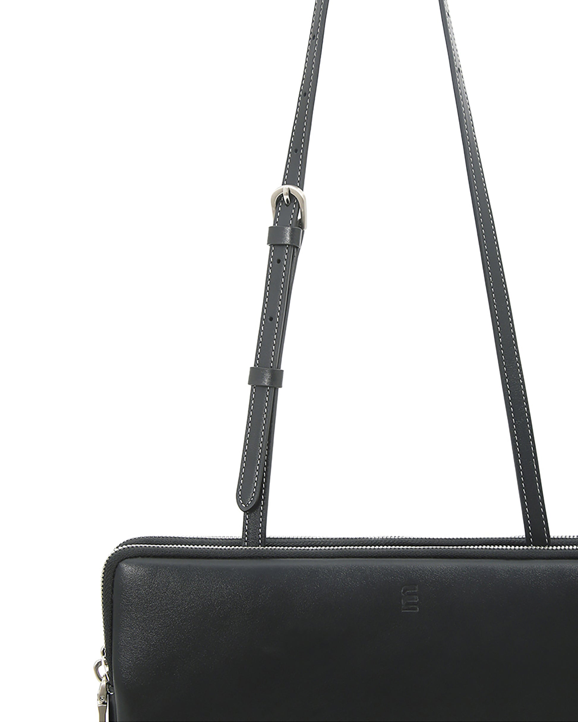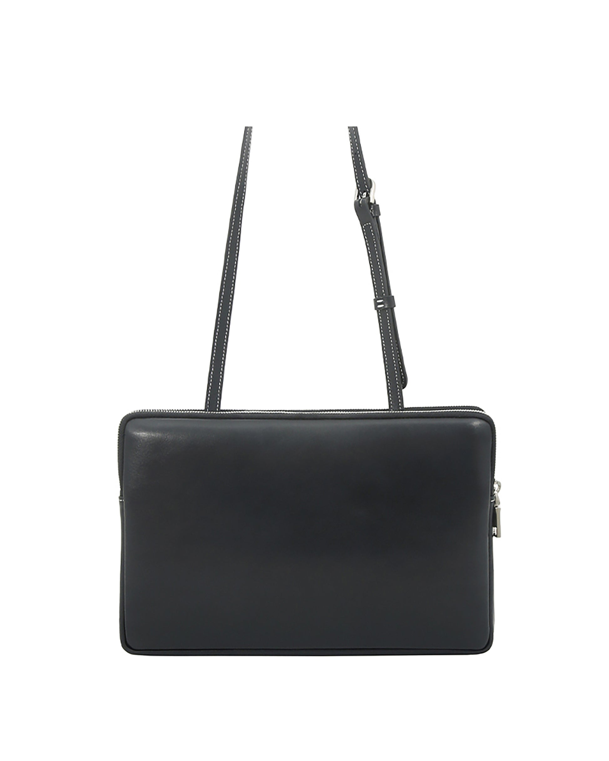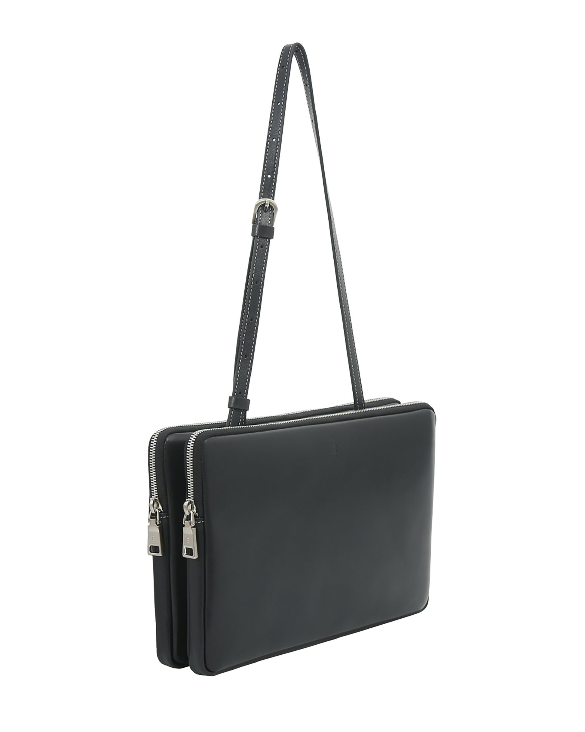 This is minitmute Twin bag. Contamination and scratch resistant Italian Tender Leather is used, and vintage mood is added with YKK zipper and nickel satin matte buckles. It can be used freely as a tote, shoulder, and cross bag, and the two twin-like bodies boast relaxed storage including iPad 11.