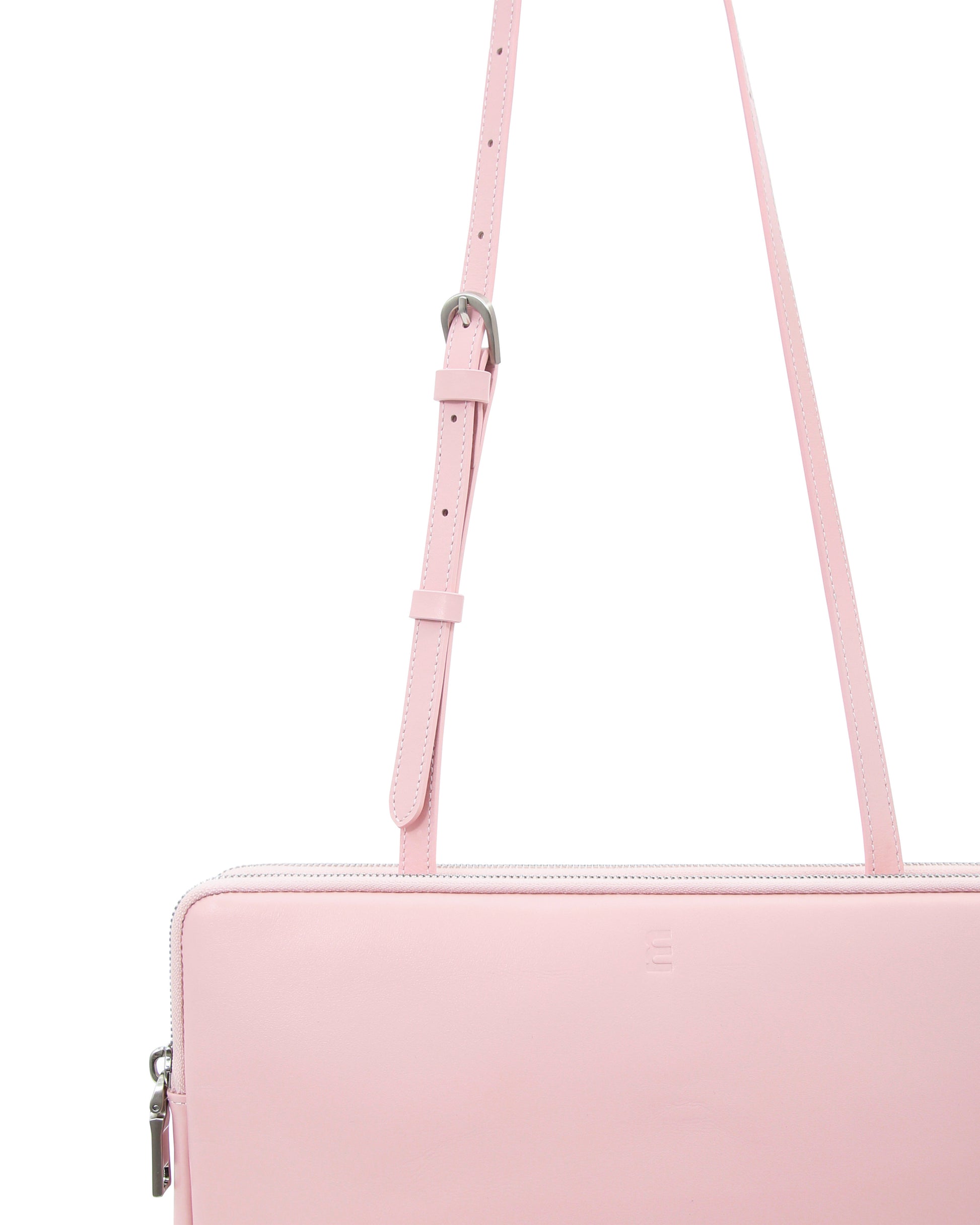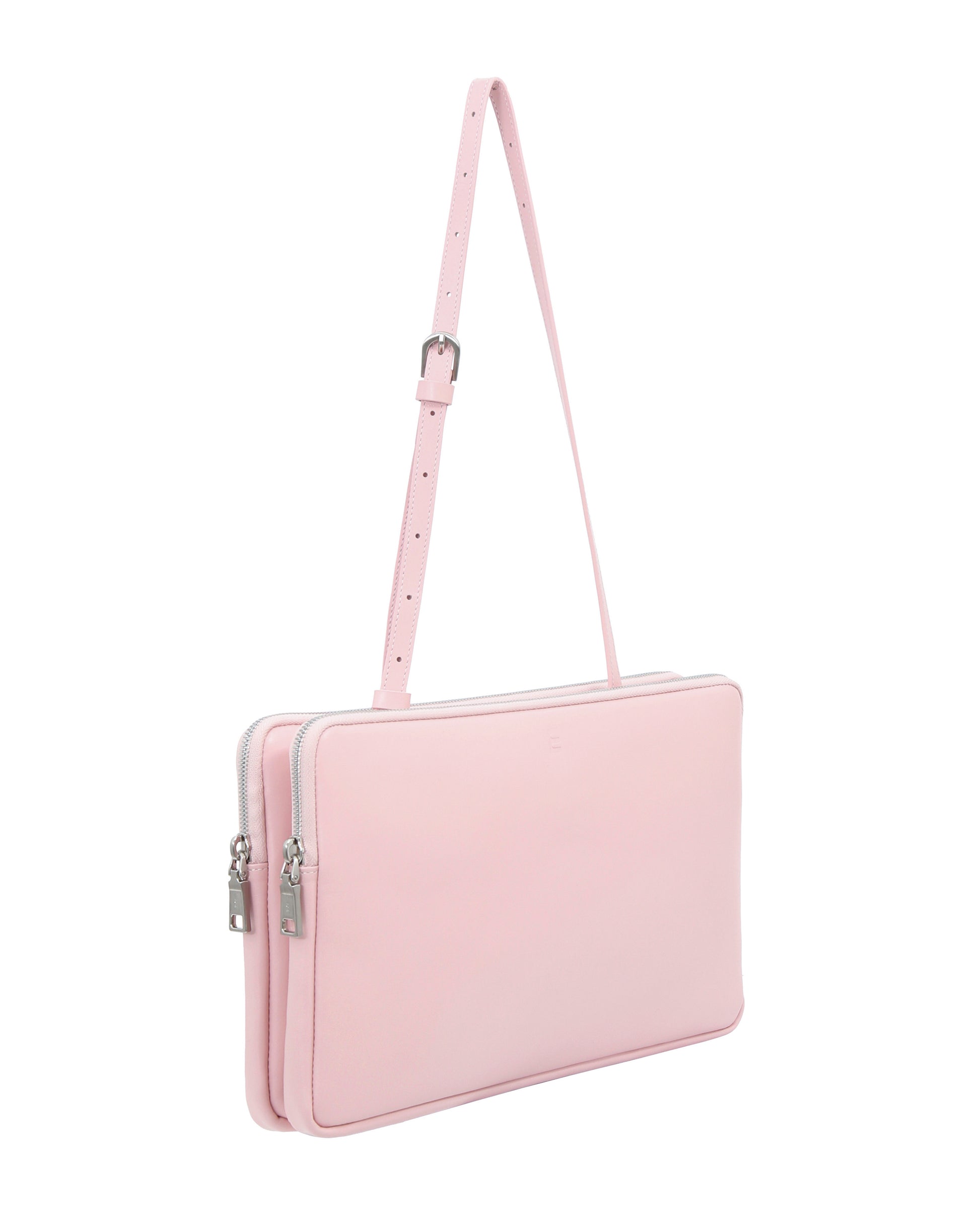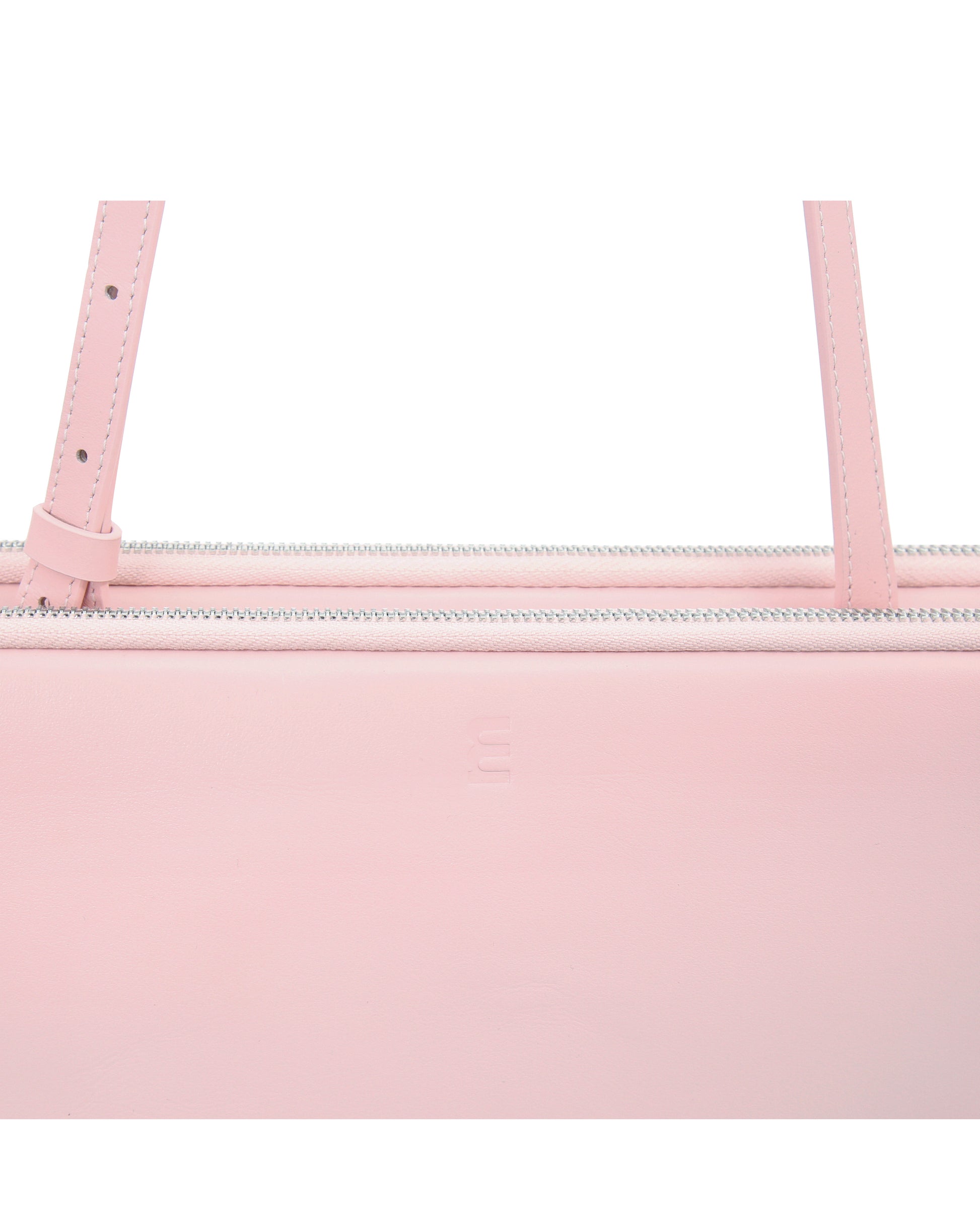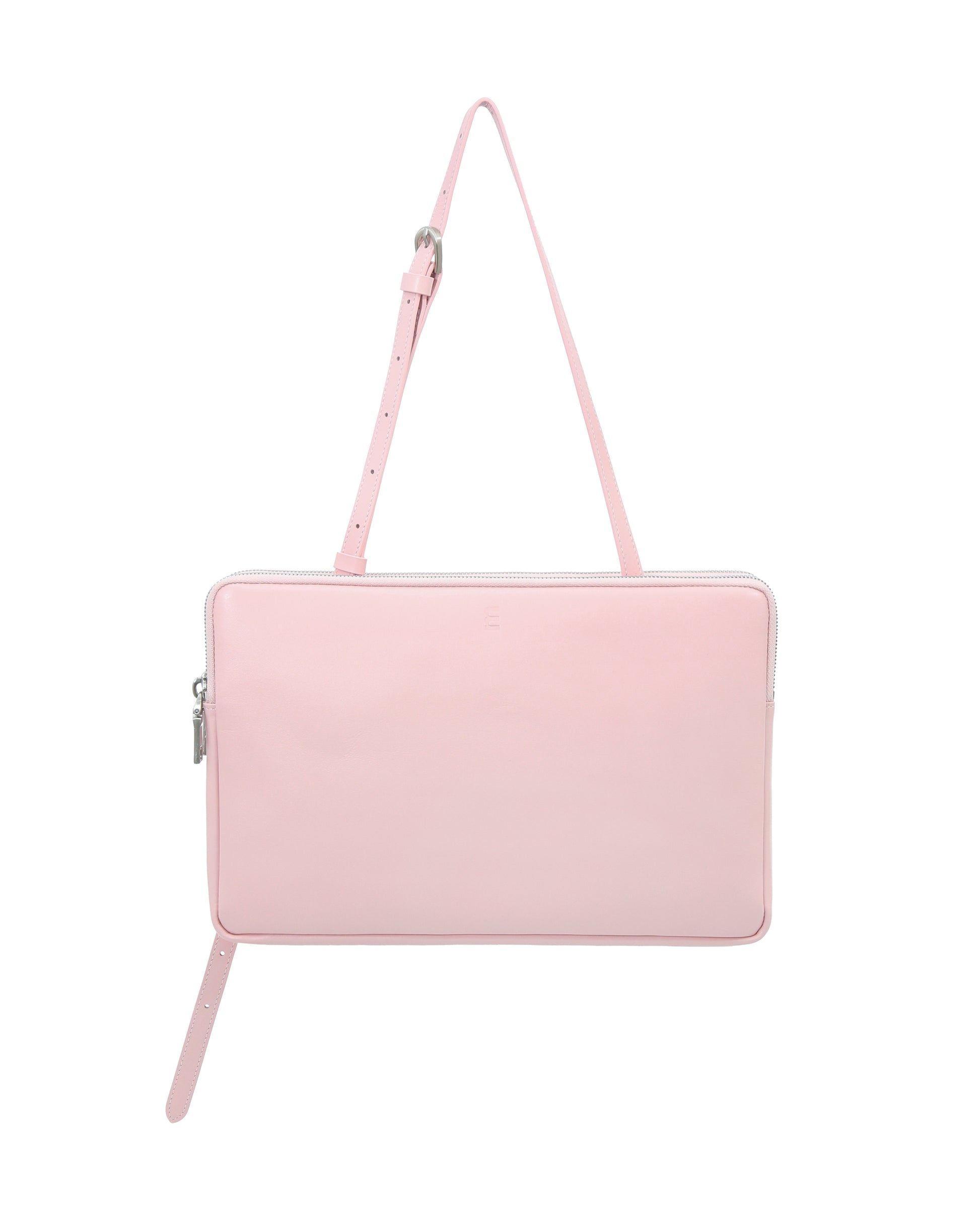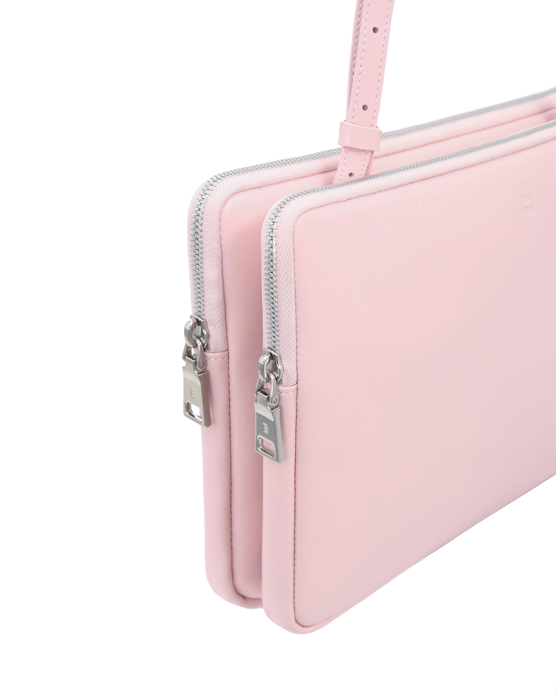 This is minitmute Twin bag. Contamination and scratch resistant Italian Tender Leather is used, and vintage mood is added with YKK zipper and nickel satin matte buckles. It can be used freely as a tote, shoulder, and cross bag, and the two twin-like bodies boast relaxed storage including iPad 11.