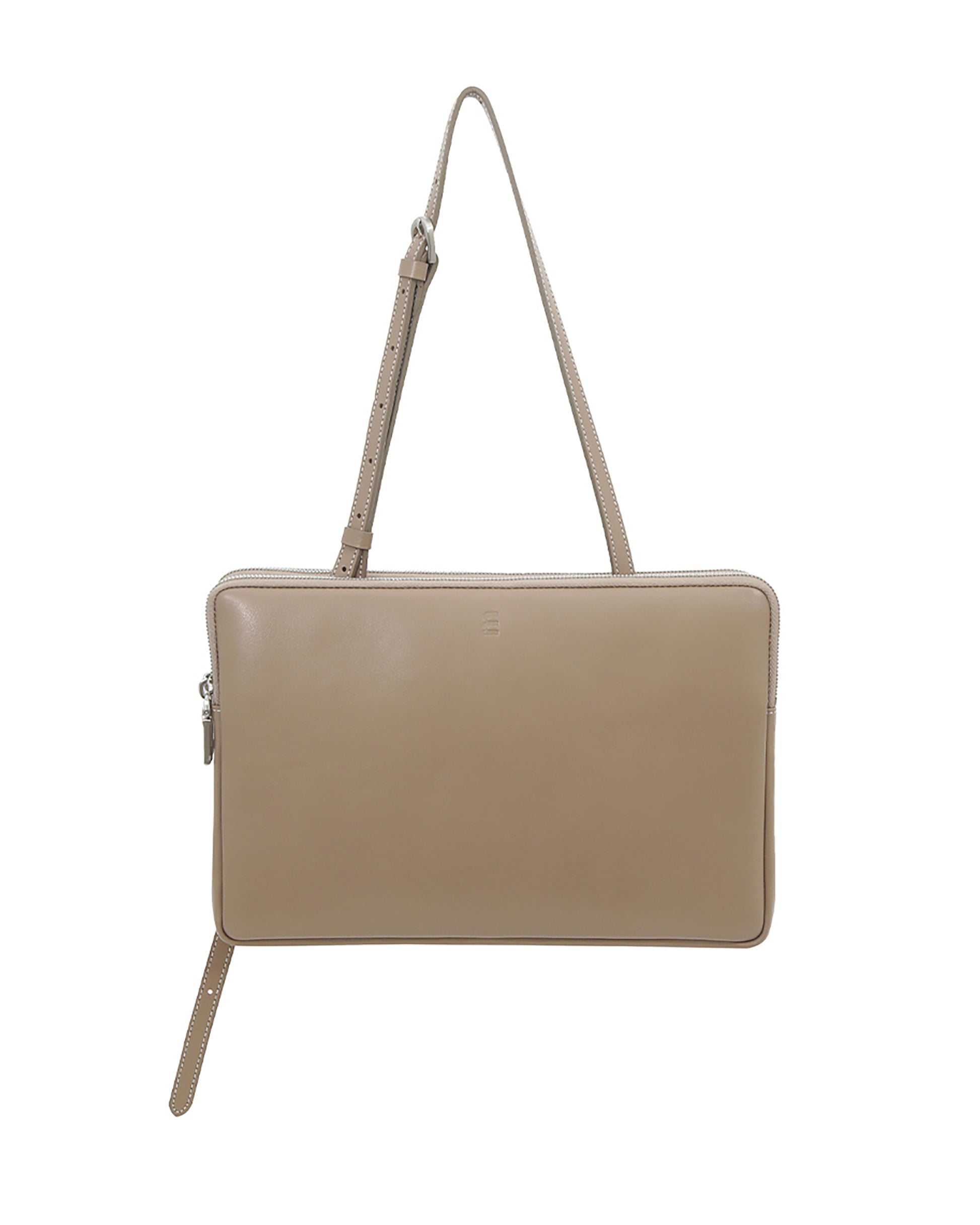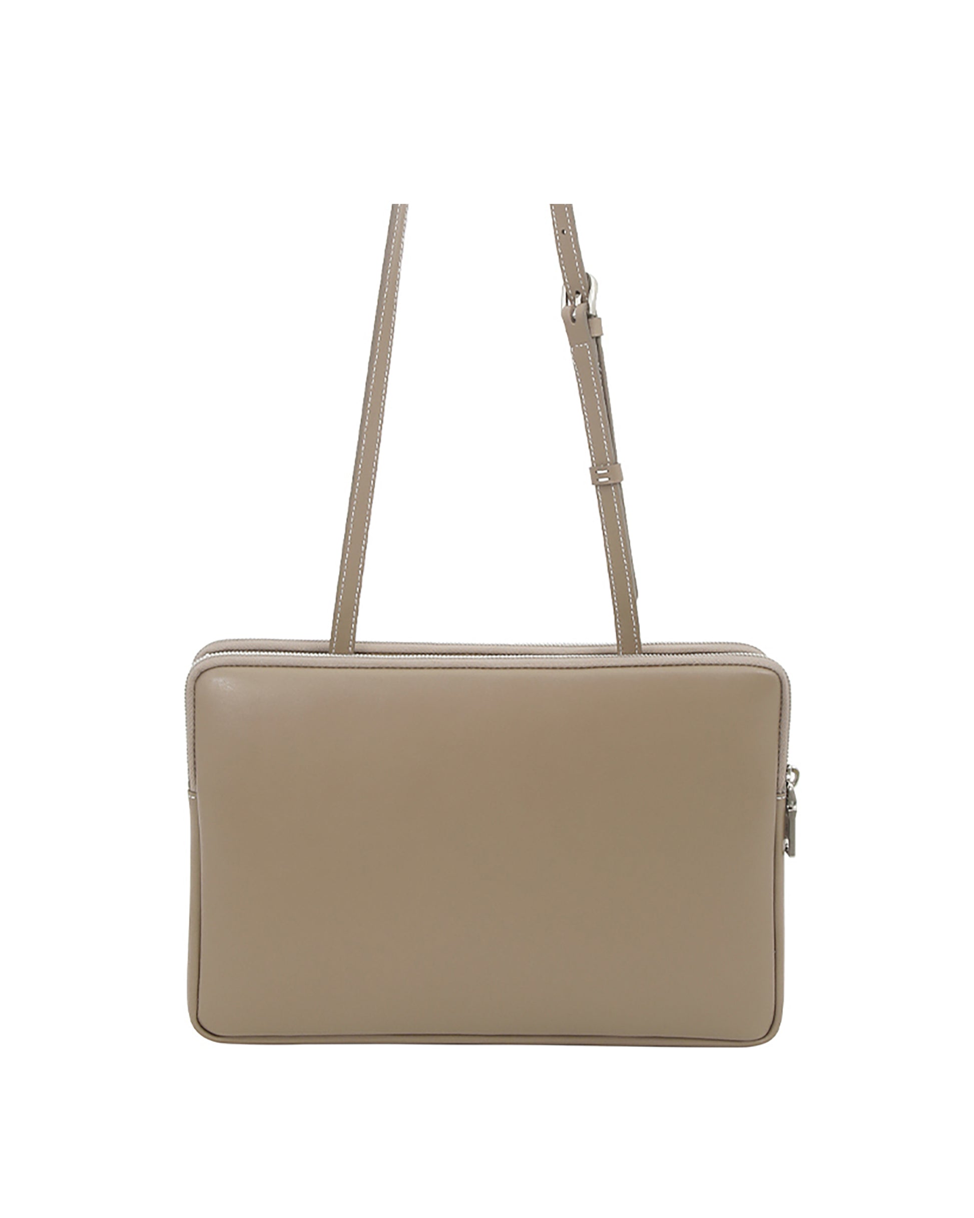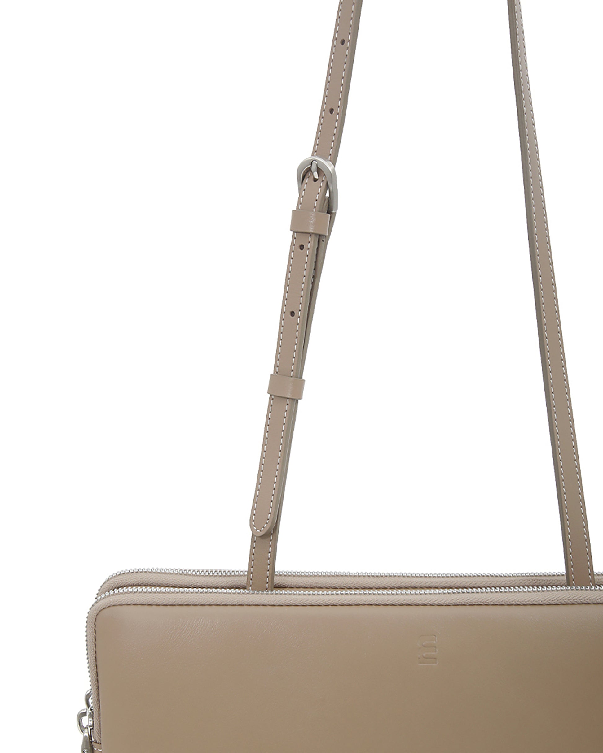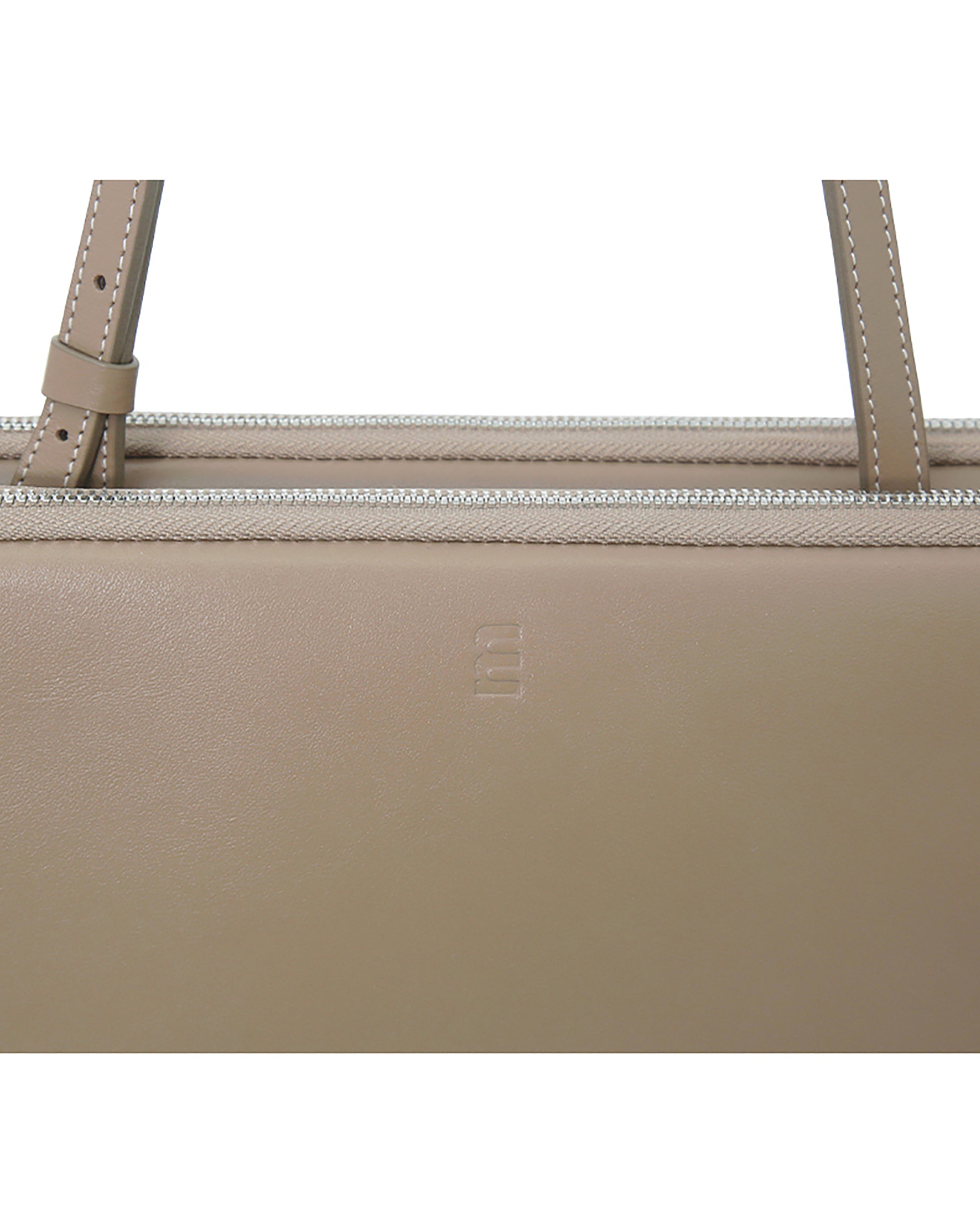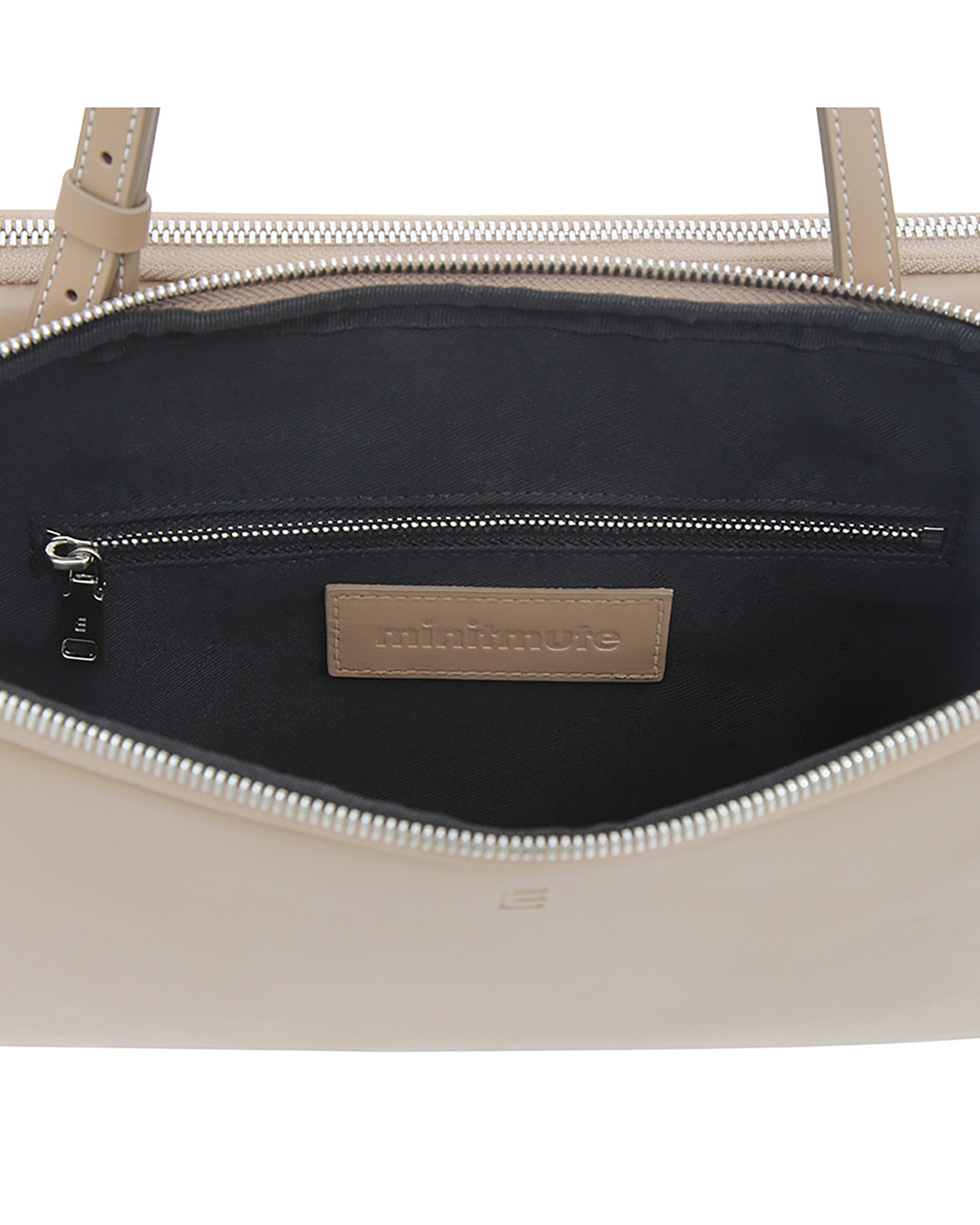 This is minitmute Twin bag. Contamination and scratch resistant Italian Tender Leather is used, and vintage mood is added with YKK zipper and nickel satin matte buckles. It can be used freely as a tote, shoulder, and cross bag, and the two twin-like bodies boast relaxed storage including iPad 11.