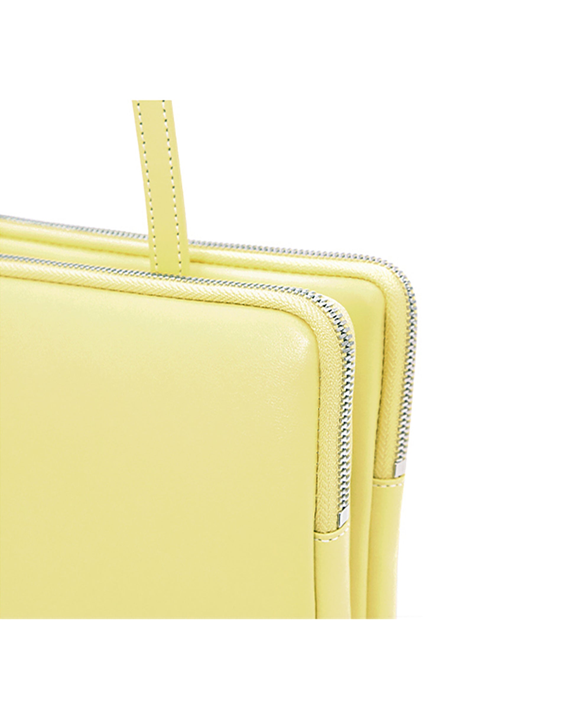 This is minitmute Twin bag. Contamination and scratch resistant Italian Tender Leather is used, and vintage mood is added with YKK zipper and nickel satin matte buckles. It can be used freely as a tote, shoulder, and cross bag, and the two twin-like bodies boast relaxed storage including iPad 11.