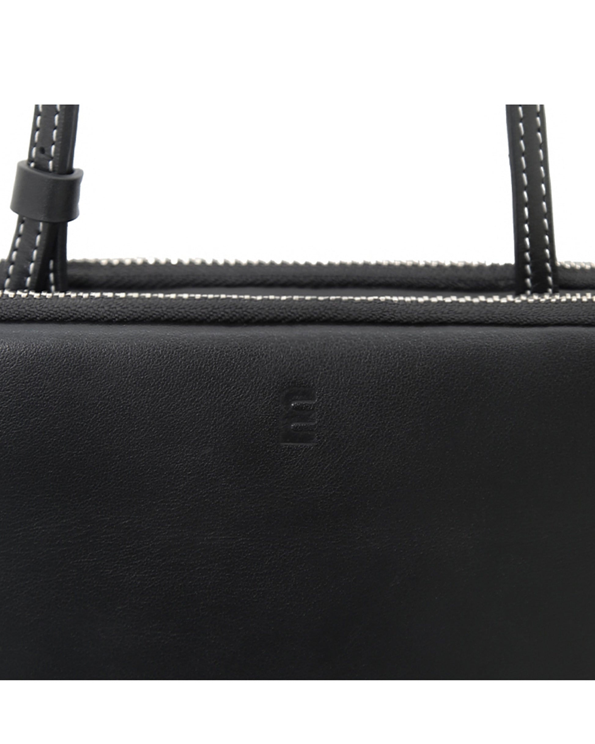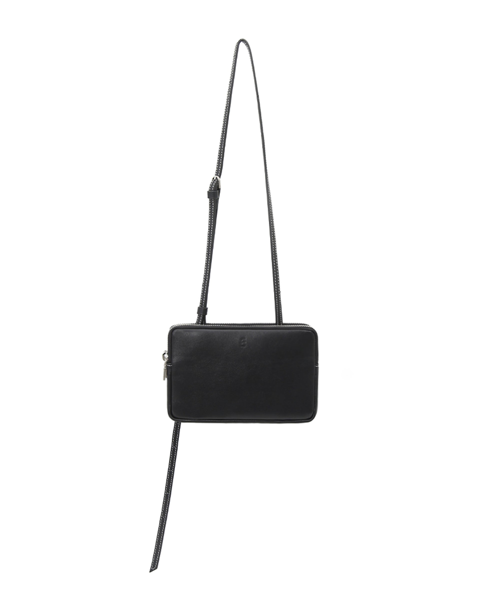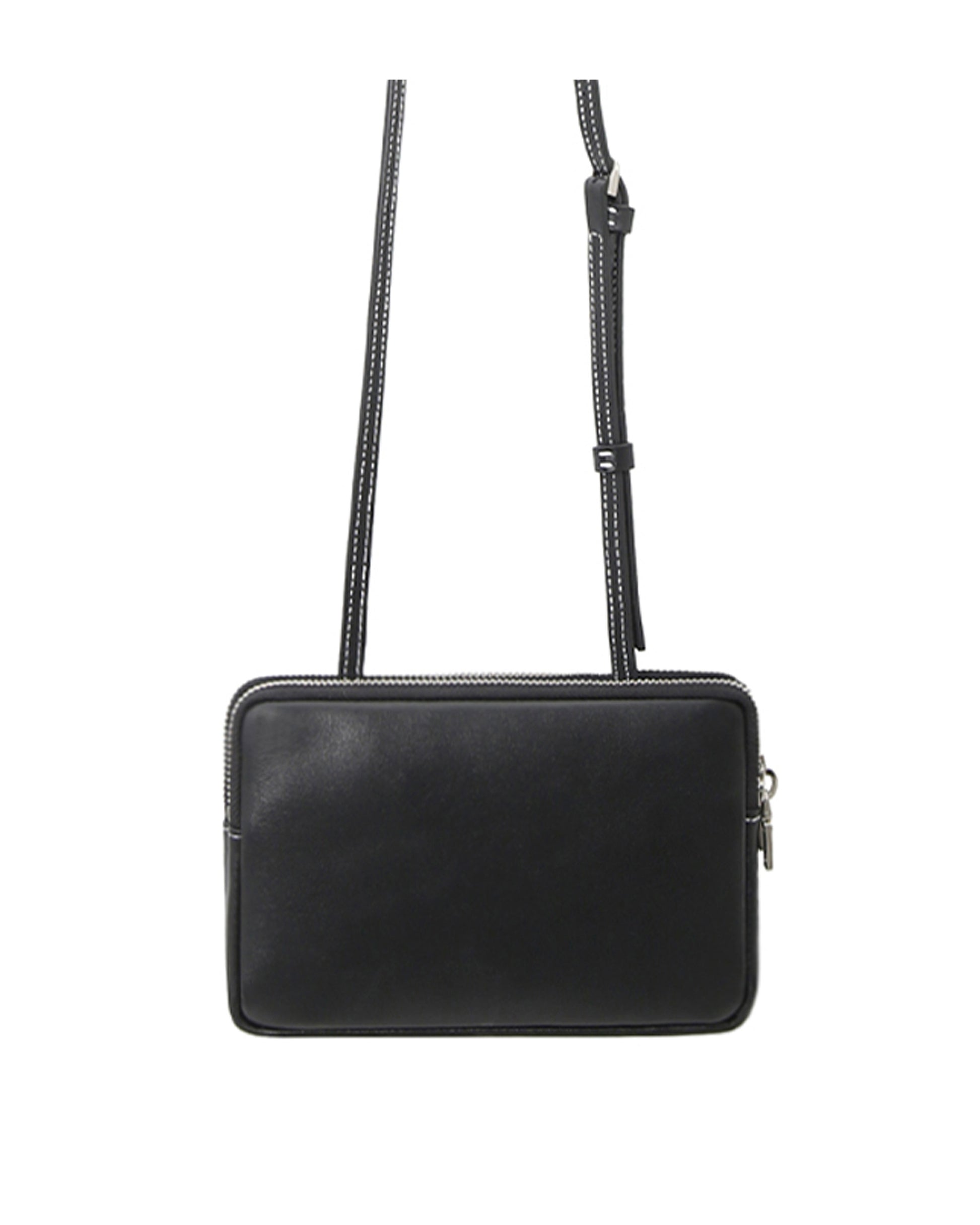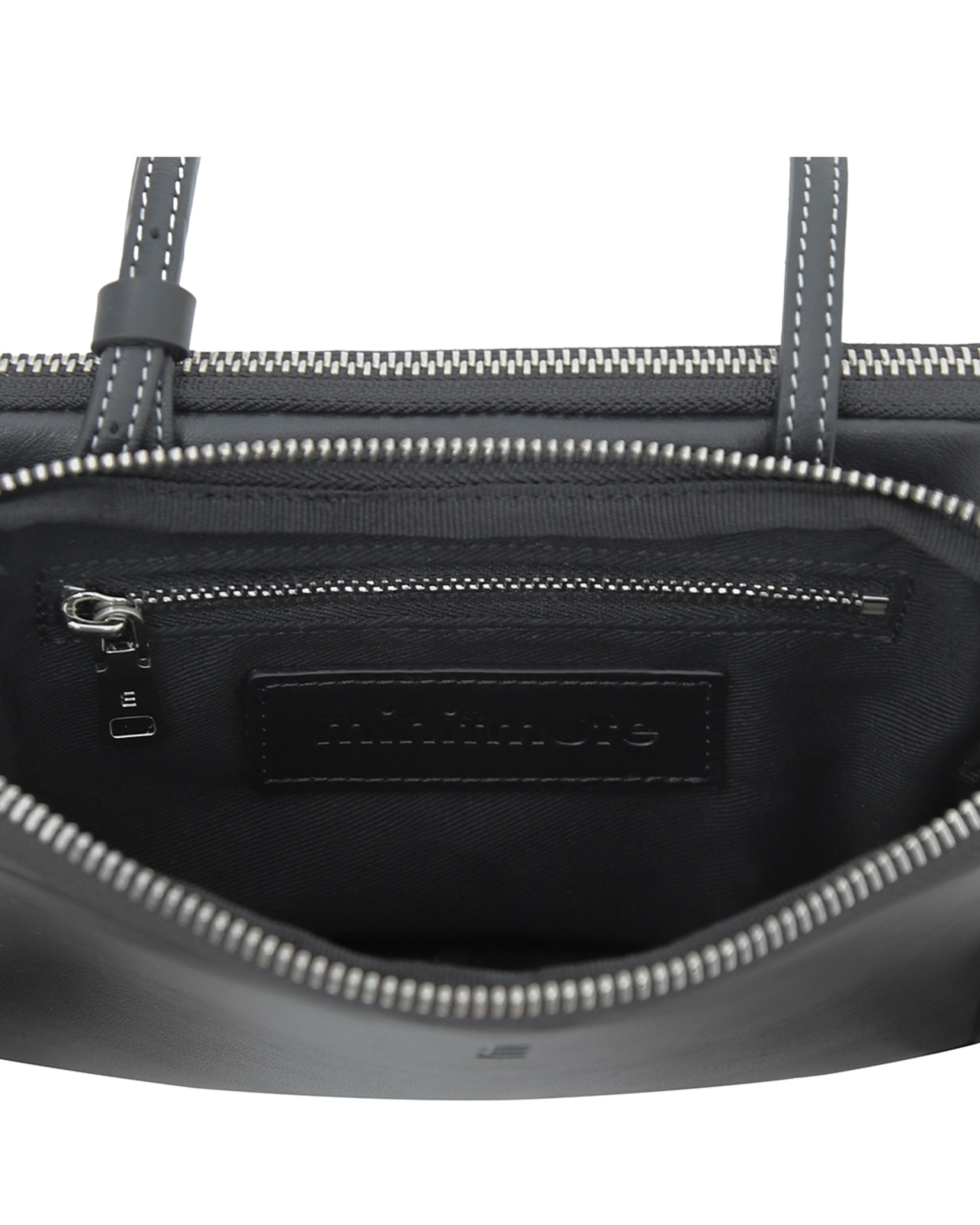 This is minitmute Twin Micro. Made of contamination and scratch-resistant Italian tender leather, and added a vintage touch with a YKK zipper and nickel satin matte buckles. Despite its compact size, it can hold a passport and a phone, making it practical for travel. The two twin-like bodies offer relaxed storage, and the adjustable strap allows for versatile styling as a tote, shoulder, or crossbody bag.