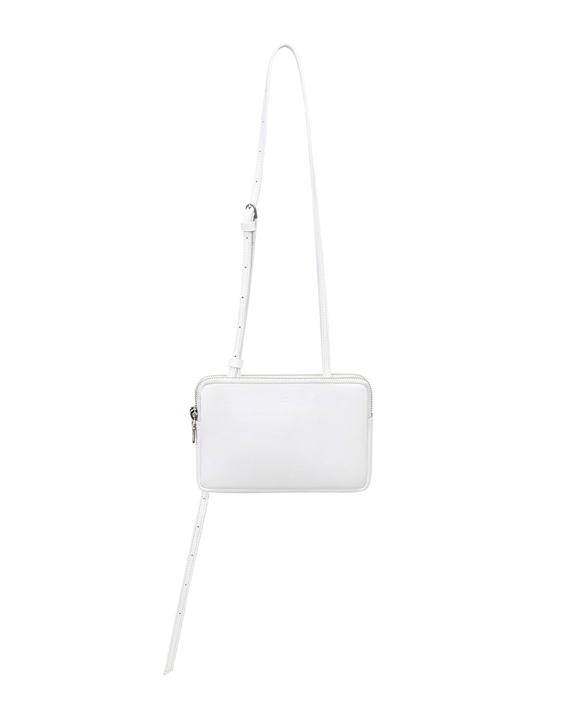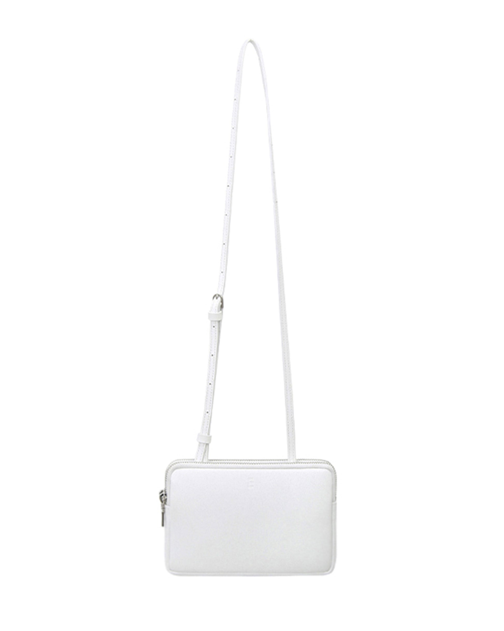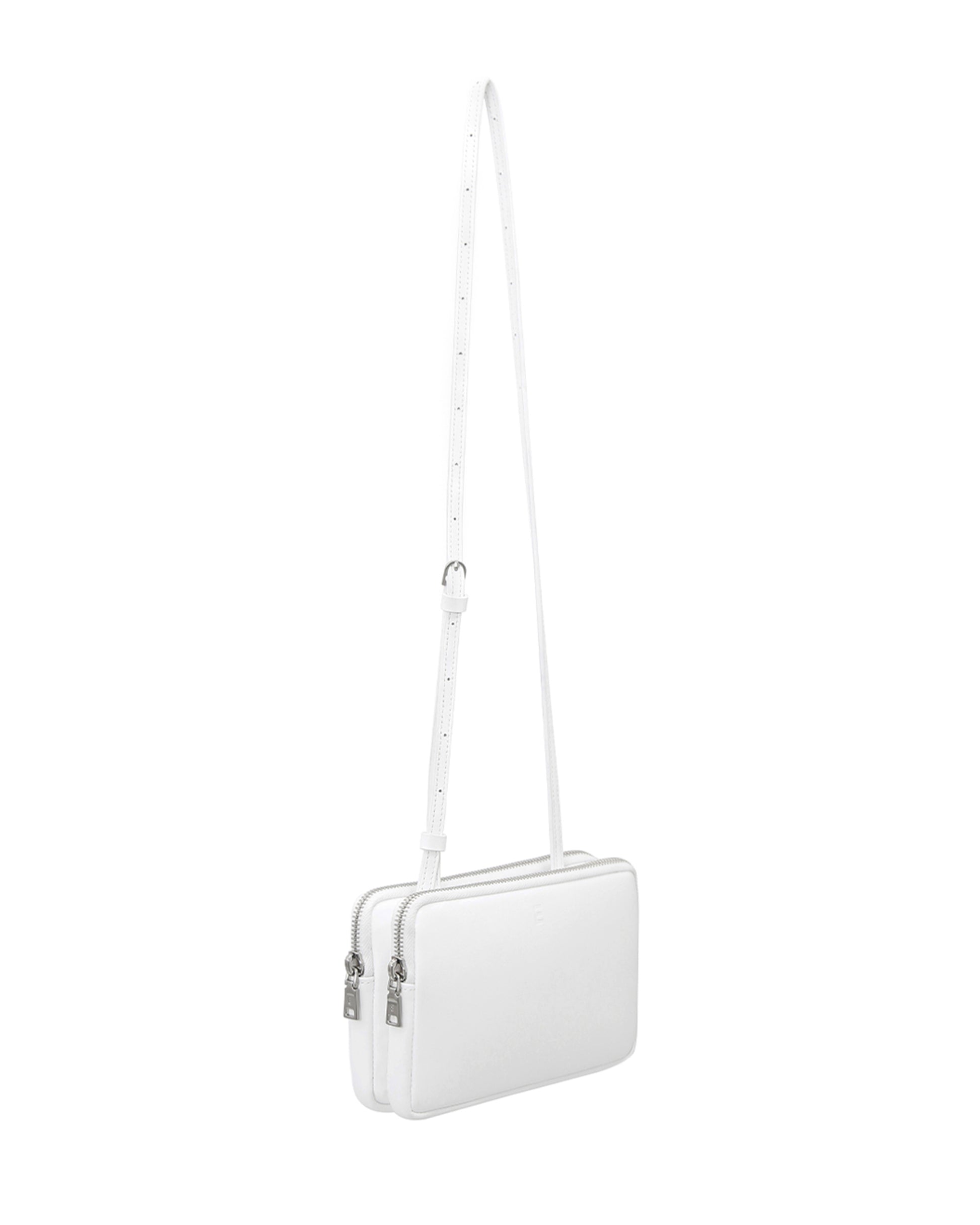 This is minitmute Twin Micro. Made of matte BBG-type Italian leather, and added a vintage touch with a YKK zipper and nickel satin matte buckles. Despite its compact size, it can hold a passport and a phone, making it practical for travel. The twin-like double compartments offer relaxed storage, and the adjustable strap allows for versatile styling as a tote, shoulder, or crossbody bag.