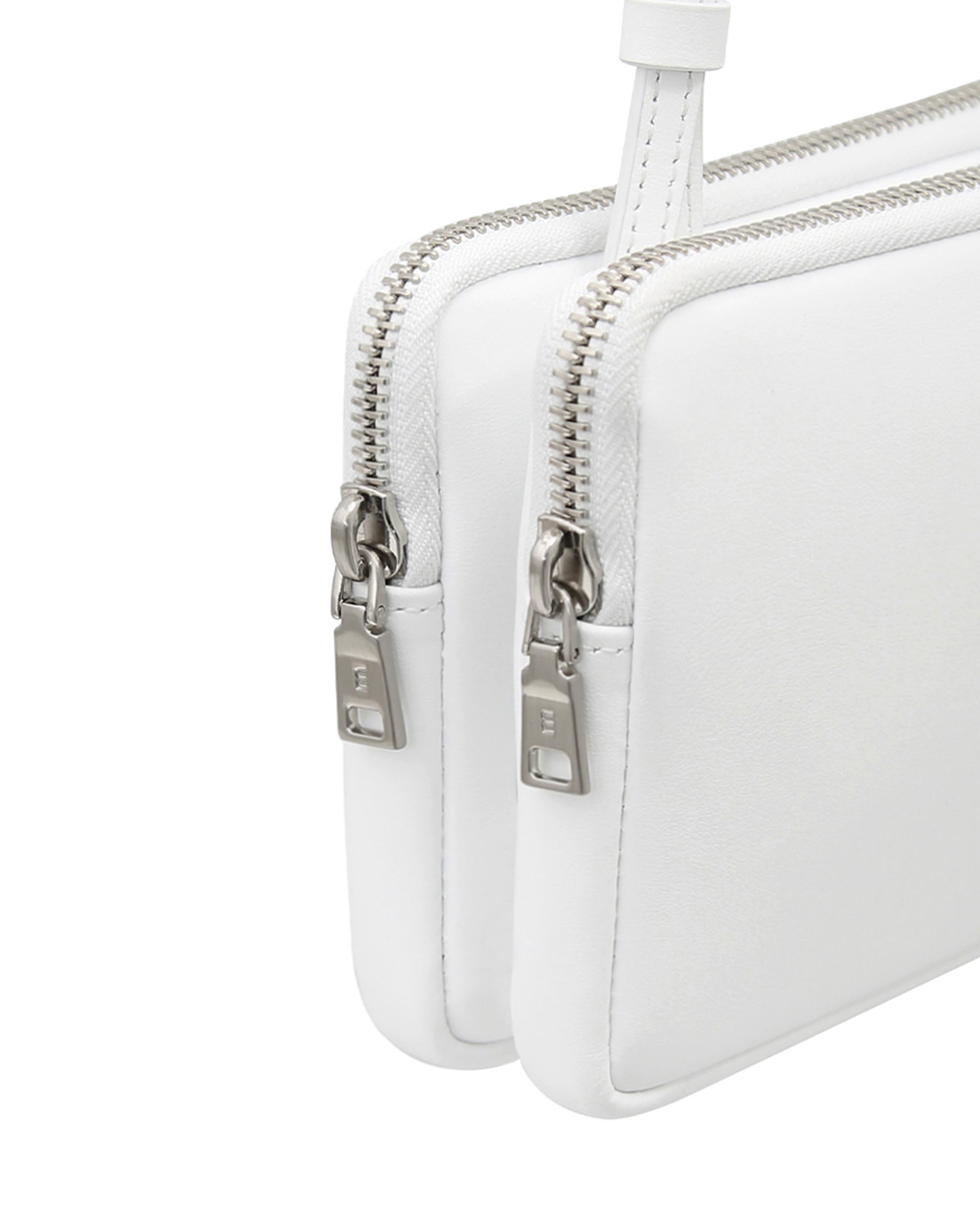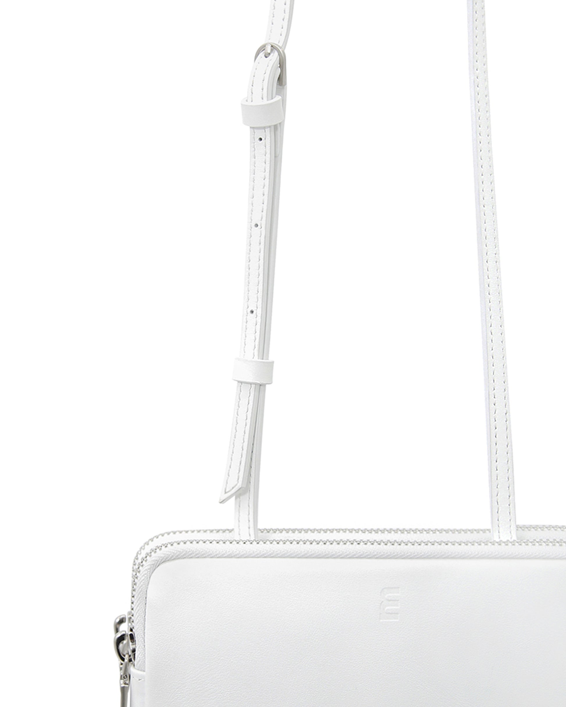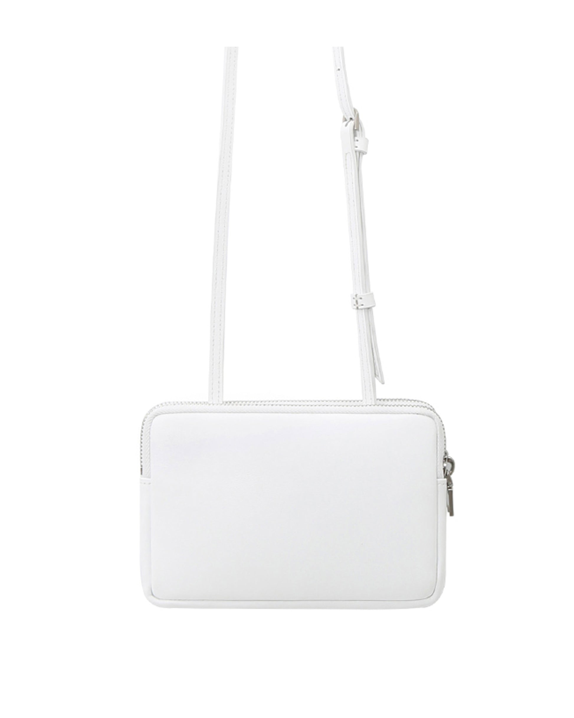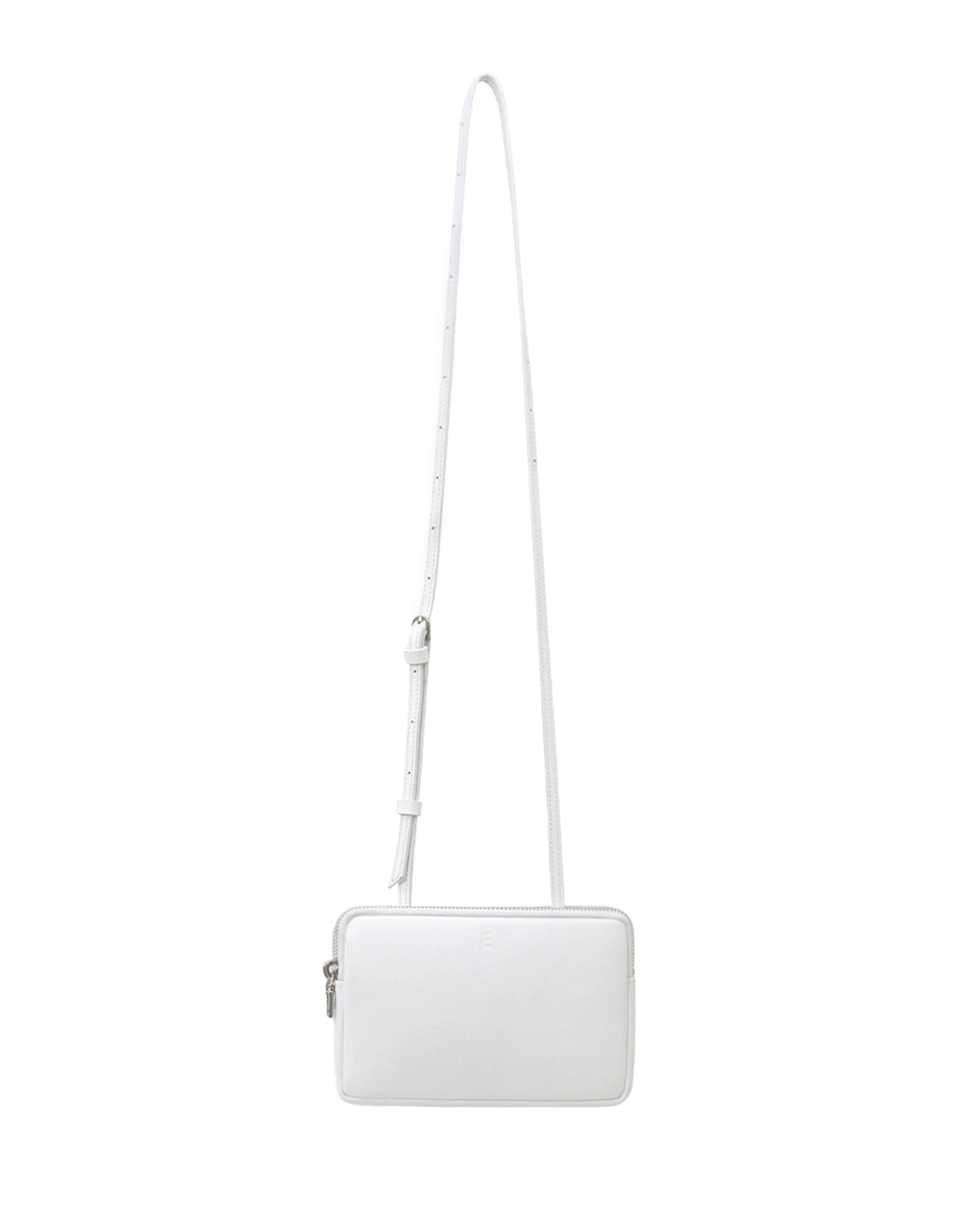 This is minitmute Twin Micro. Made of matte BBG-type Italian leather, and added a vintage touch with a YKK zipper and nickel satin matte buckles. Despite its compact size, it can hold a passport and a phone, making it practical for travel. The twin-like double compartments offer relaxed storage, and the adjustable strap allows for versatile styling as a tote, shoulder, or crossbody bag.
