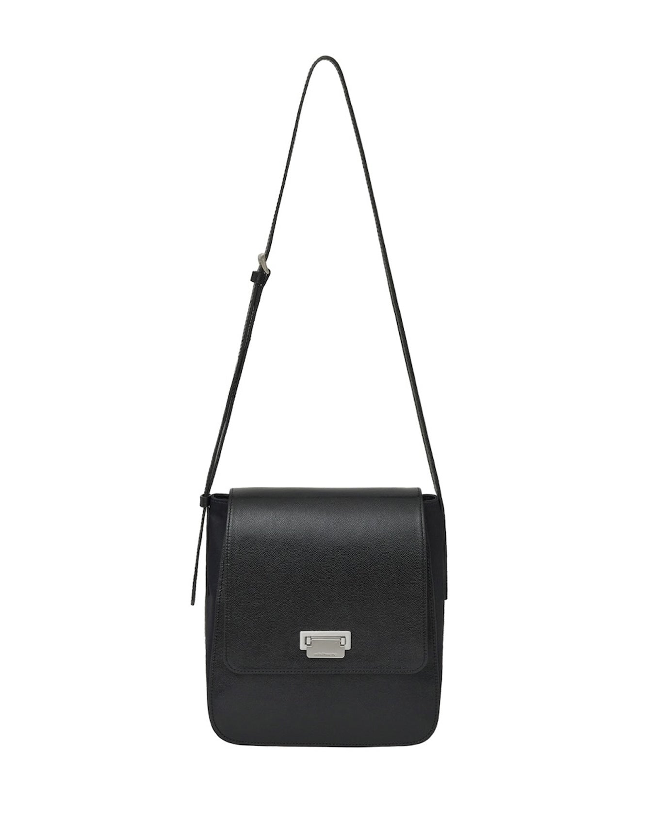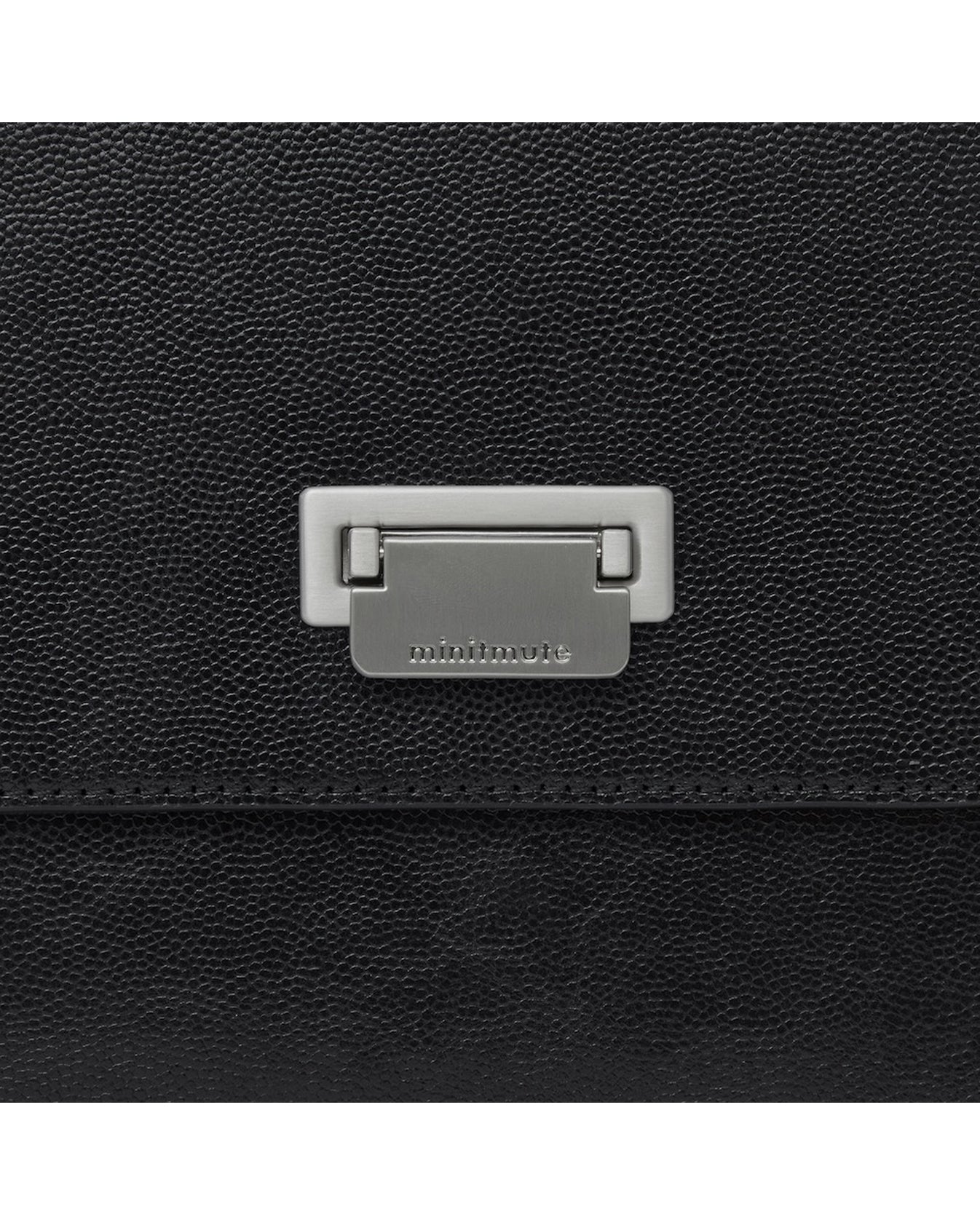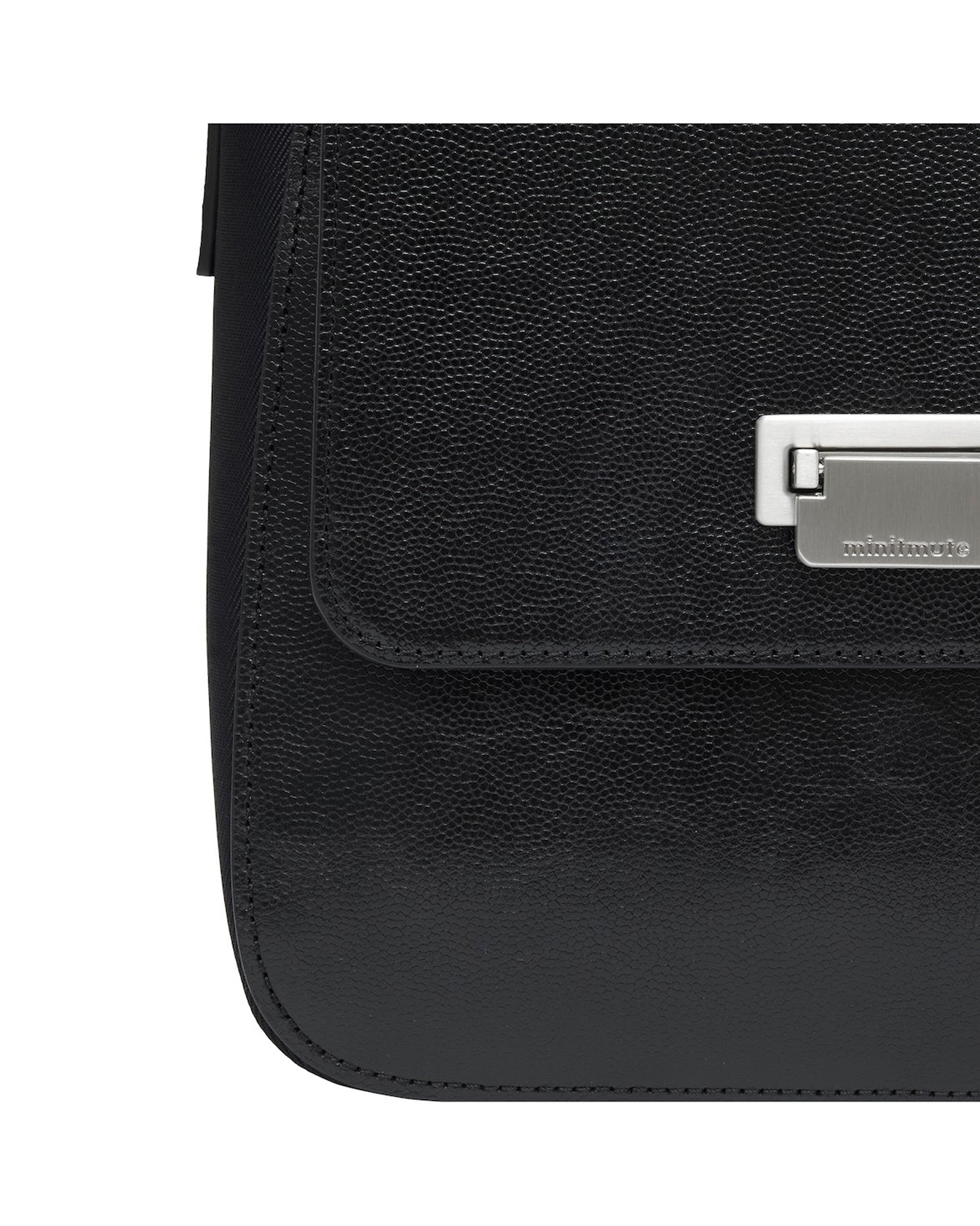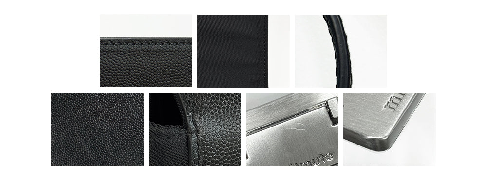 This is minitmute tev bag. Crafted from Italian calf leather, vegetable-process, and tanned for a supple touch and sophisticated two-tone finish. A glossy coating over the caviar embossed leather significantly improves color transfer, an inevitable characteristic of vegetable-tanned leather, and allows for natural scratches and tanning over time, ensuring a stylish finish. The sides and interior are crafted from durable yet lightweight nylon heavy twill, adding a casual touch to its luxurious mood. Maximized its attractiveness with YKK zippers, satin nickel, and a new minitmute signature flip lock.
