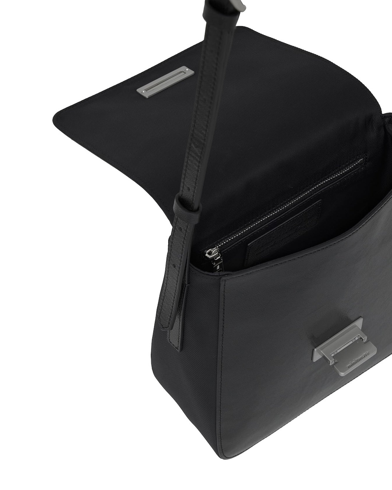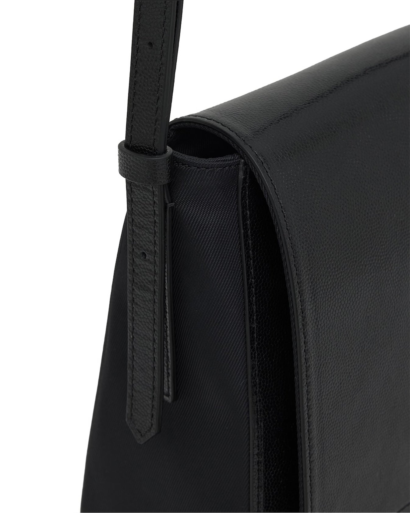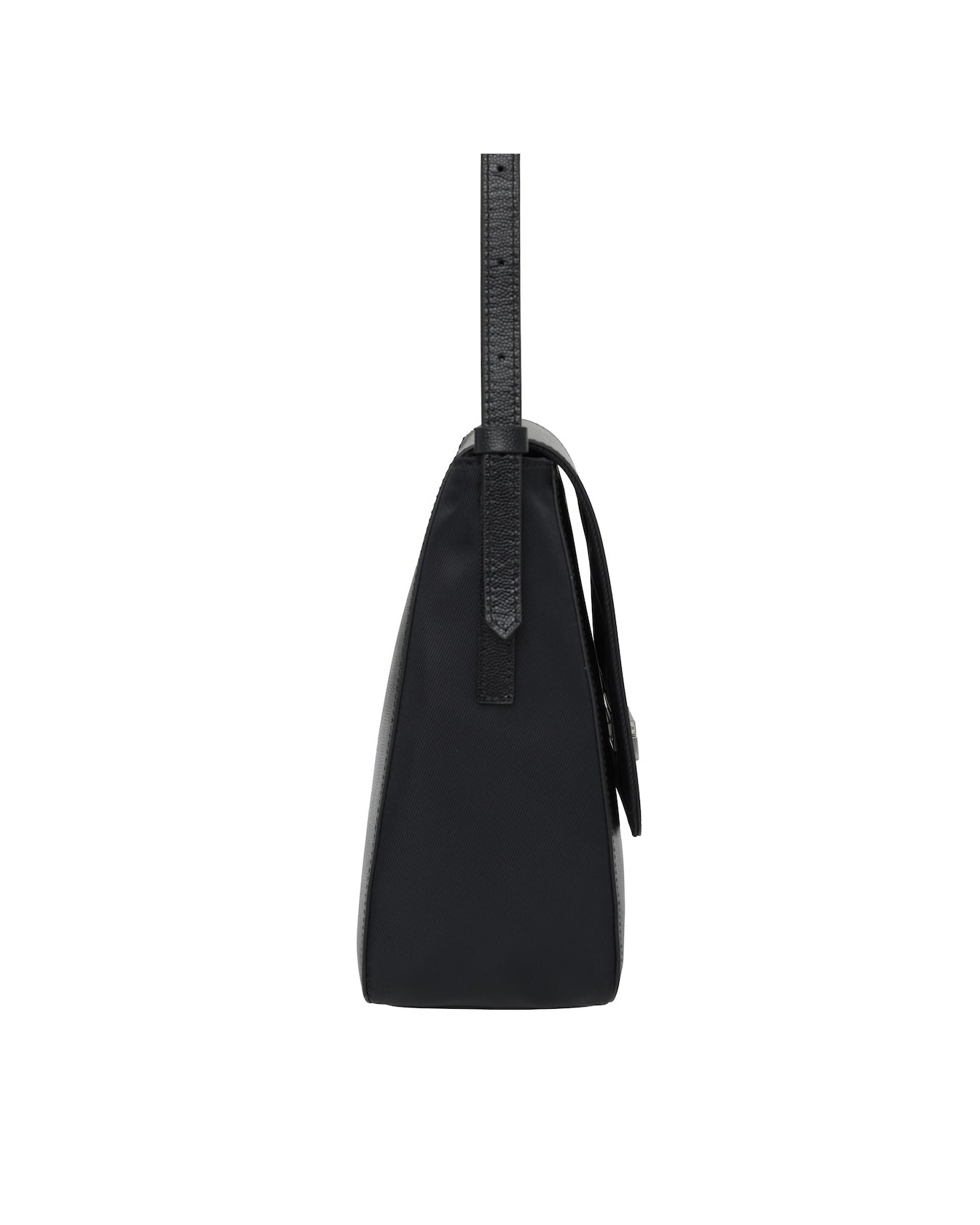 This is minitmute tev bag. Crafted from Italian calf leather, vegetable-process, and tanned for a supple touch and sophisticated two-tone finish. A glossy coating over the caviar embossed leather significantly improves color transfer, an inevitable characteristic of vegetable-tanned leather, and allows for natural scratches and tanning over time, ensuring a stylish finish. The sides and interior are crafted from durable yet lightweight nylon heavy twill, adding a casual touch to its luxurious mood. Maximized its attractiveness with YKK zippers, satin nickel, and a new minitmute signature flip lock.