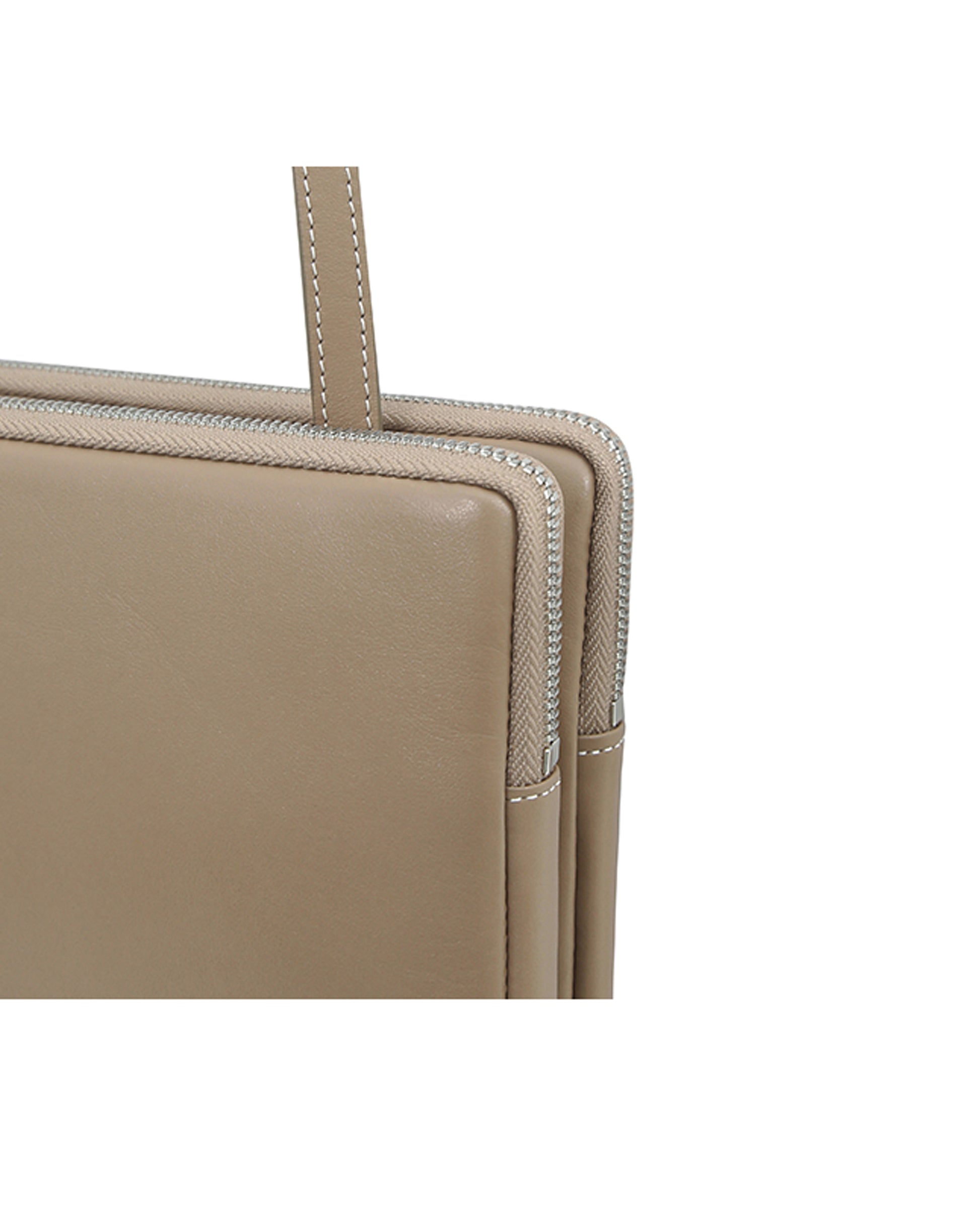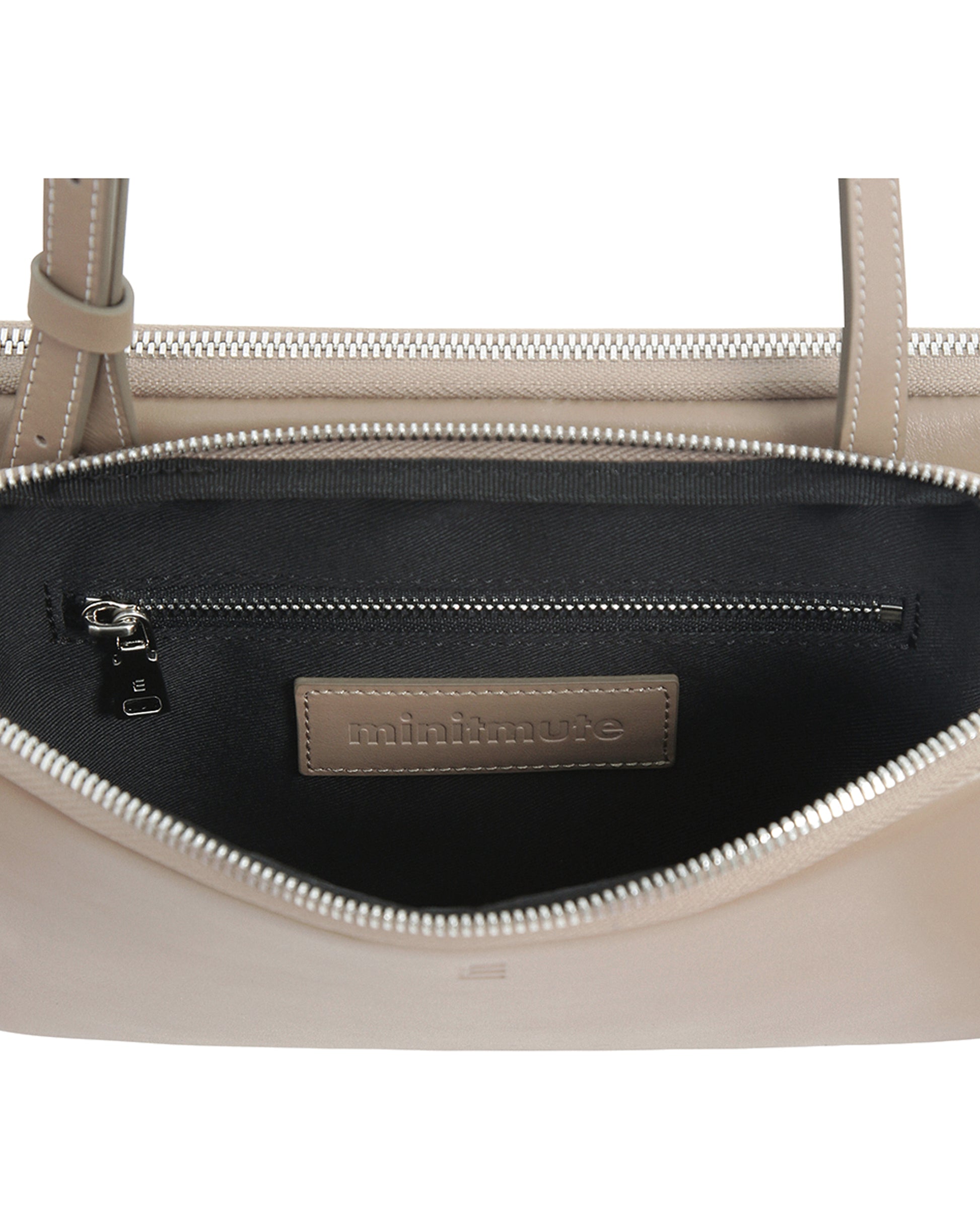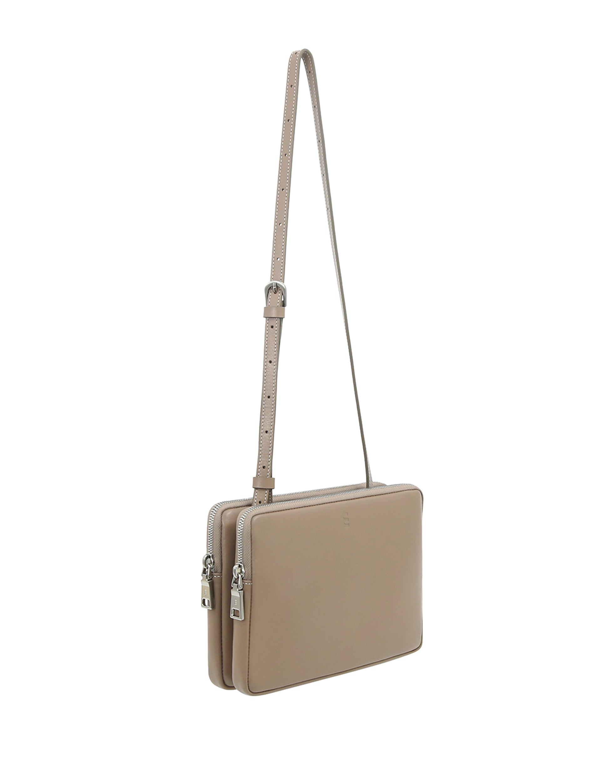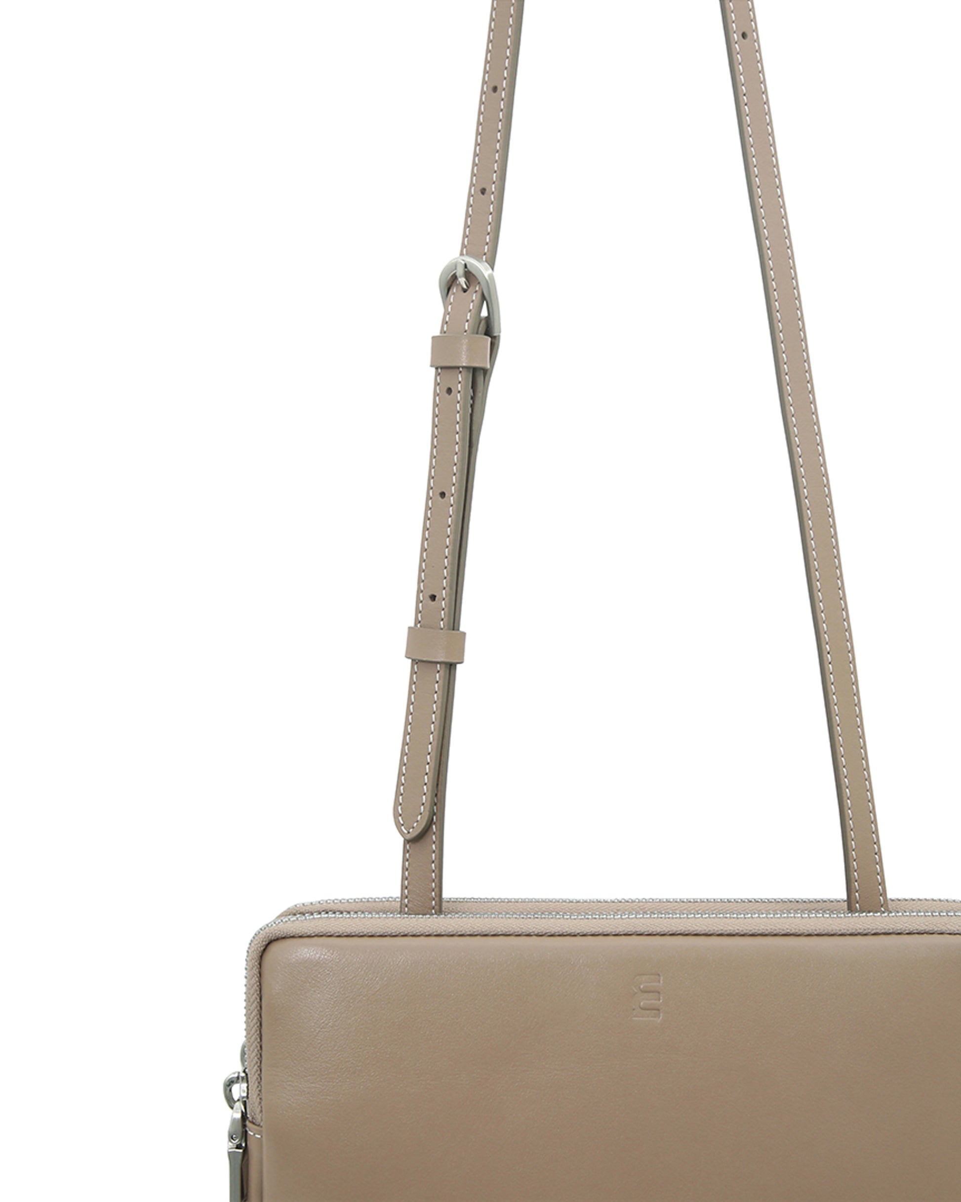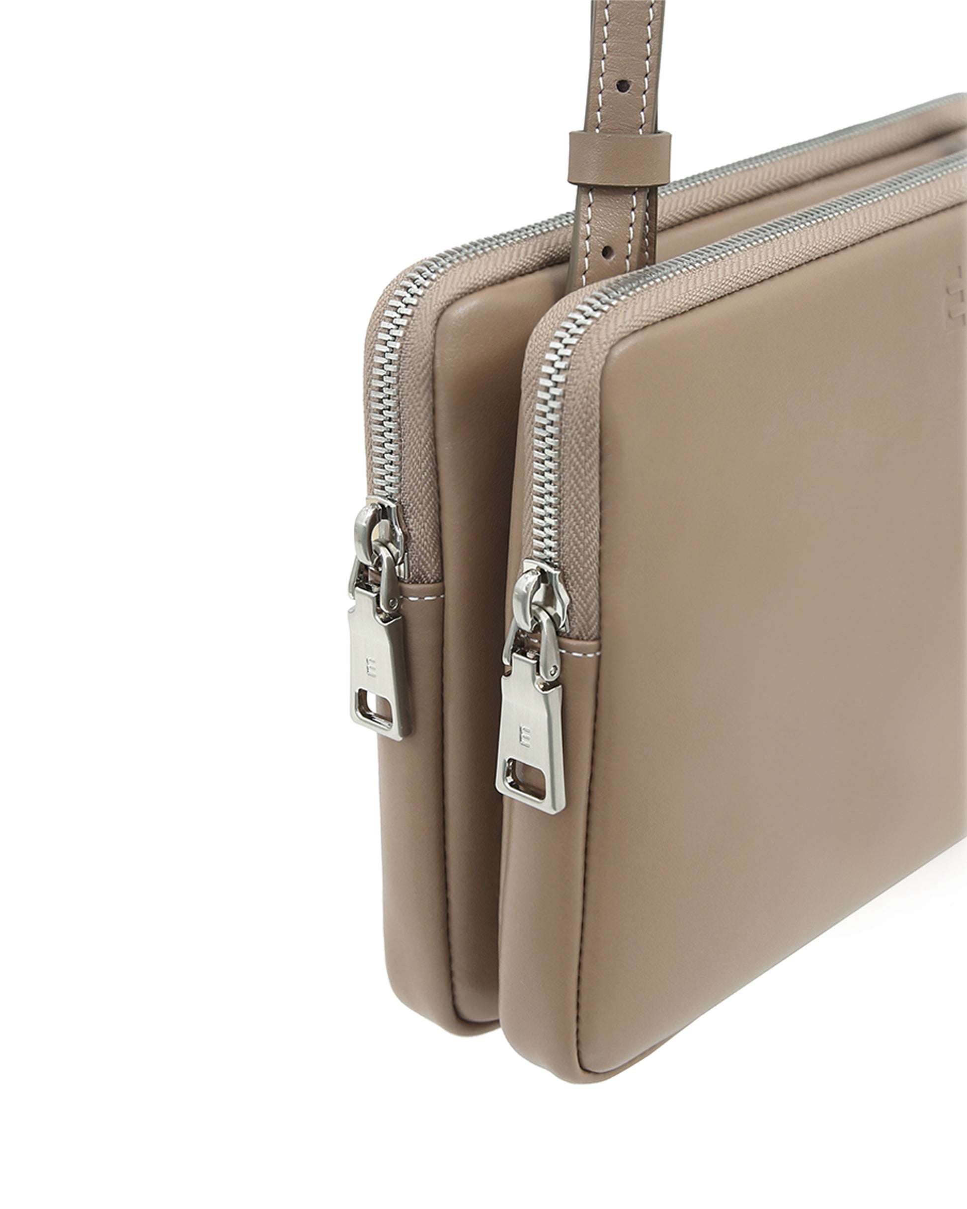 This is minitmute Twin mini. Contamination and scratch resistant Italy Tender Leather is used, and vintage mood is added with YKK zipper and nickel satin matte buckles. It can be used freely as a tote, shoulder, and cross bag, and the two twin-like bodies boast relaxed storage.