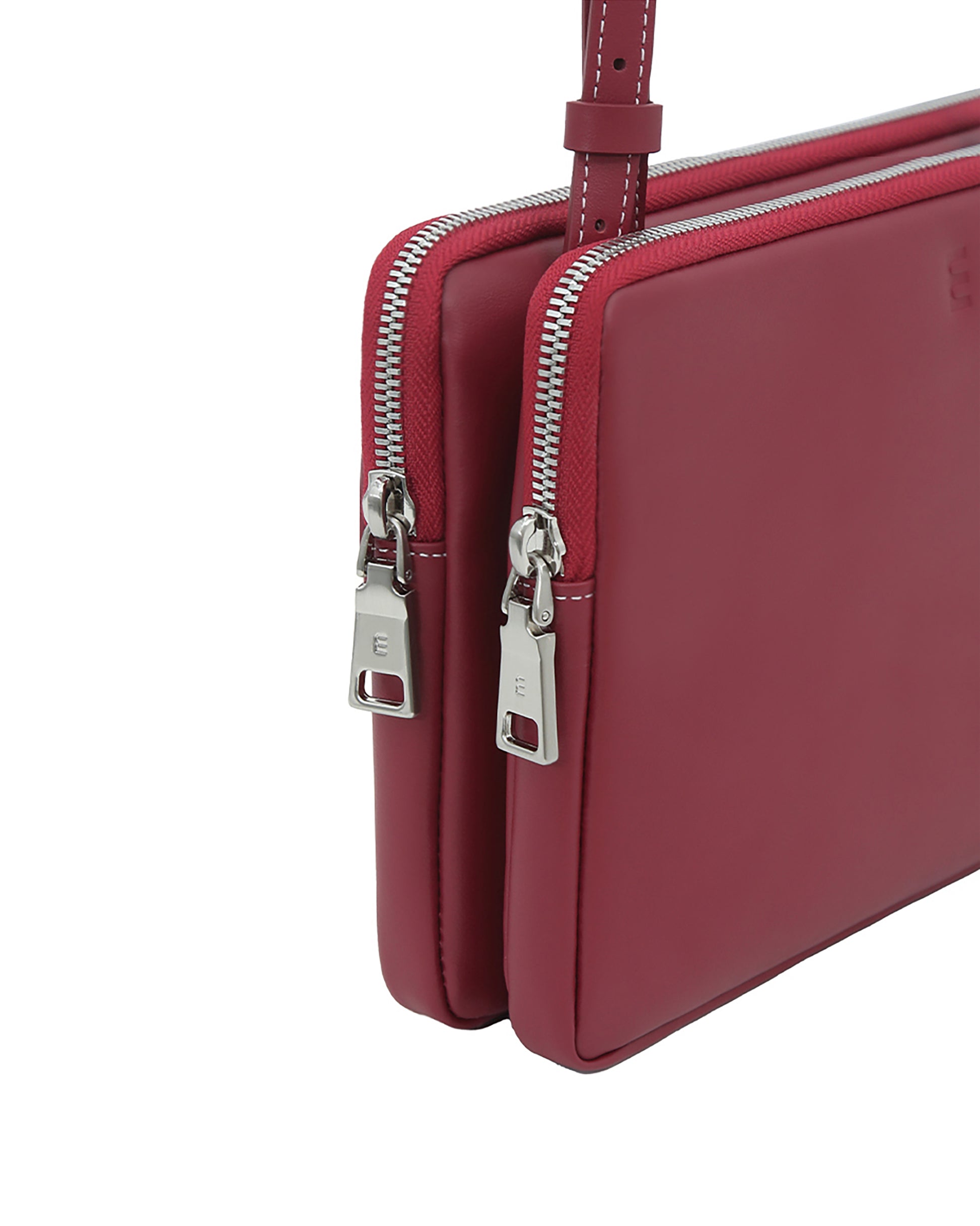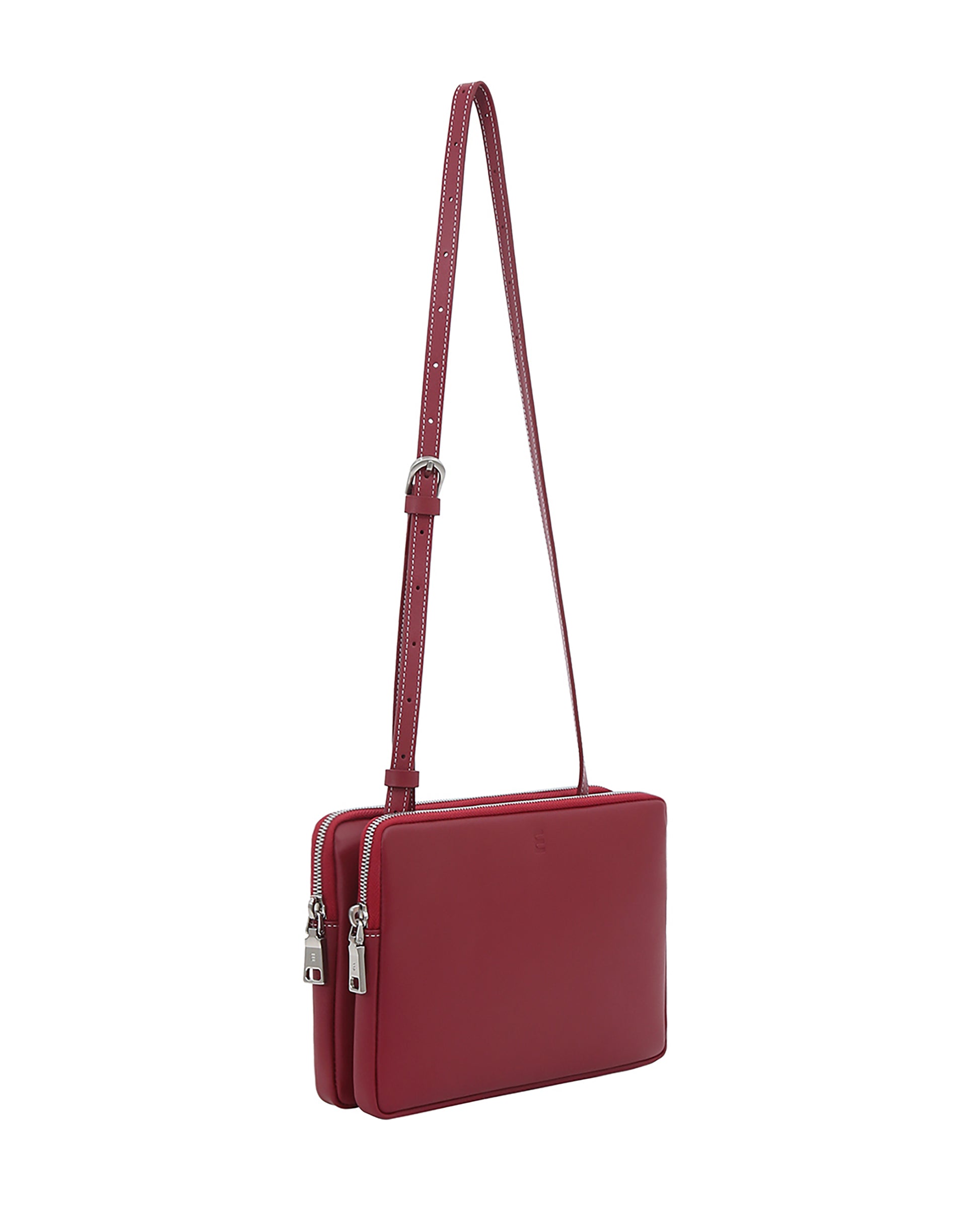 This is minitmute Twin mini. Contamination and scratch resistant Italy Cow Leather is used, and vintage mood is added with YKK zipper and nickel satin matte buckles. It can be used freely as a tote, shoulder, and cross bag, and the two twin-like bodies boast relaxed storage.